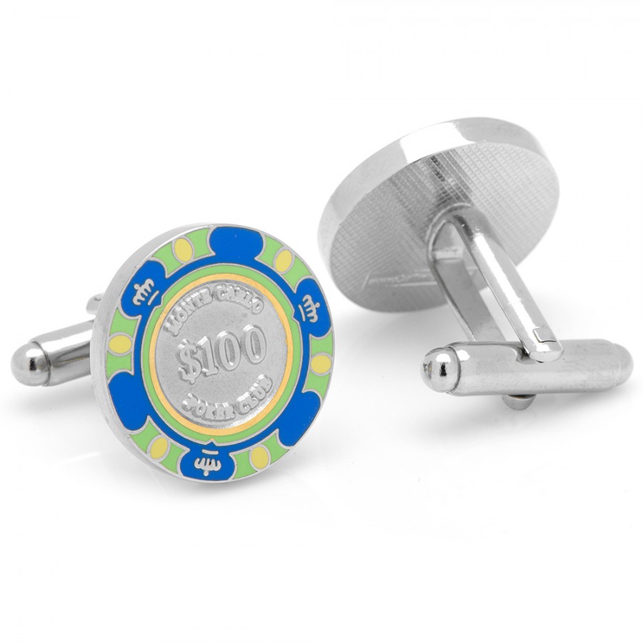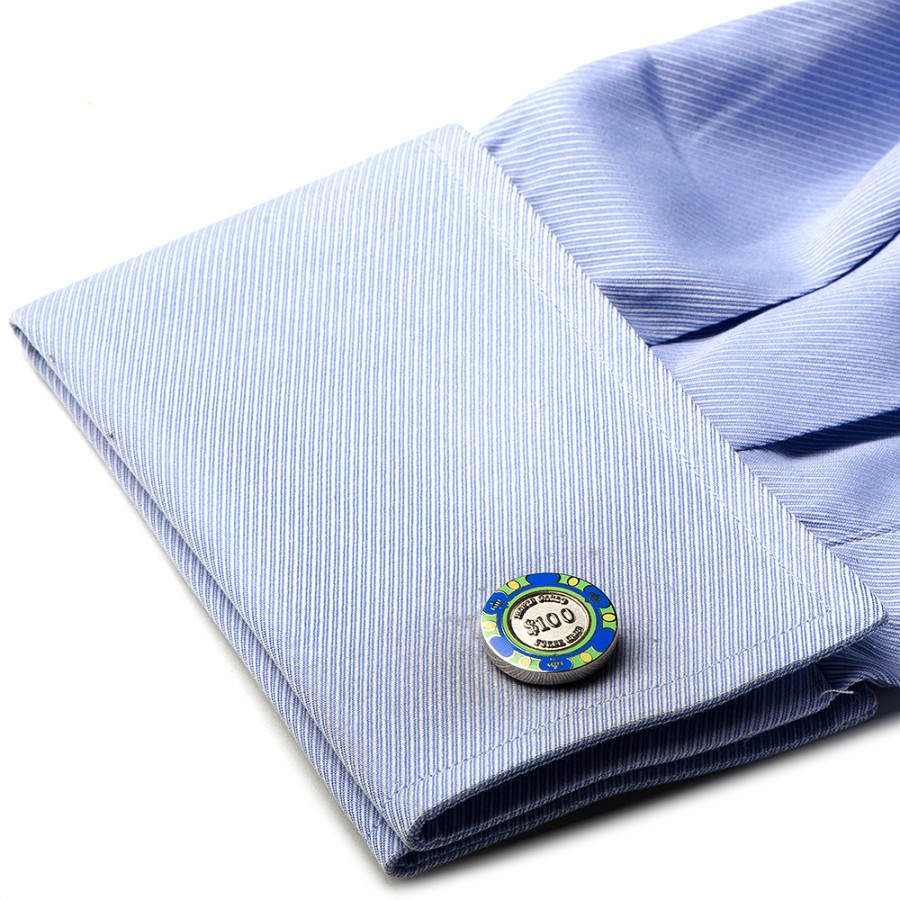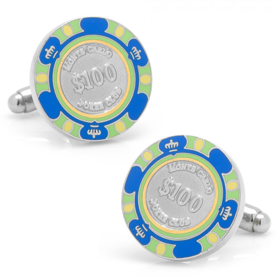 $100 Blue Poker Chip Cufflinks-CLI-CC-POK1-BLU