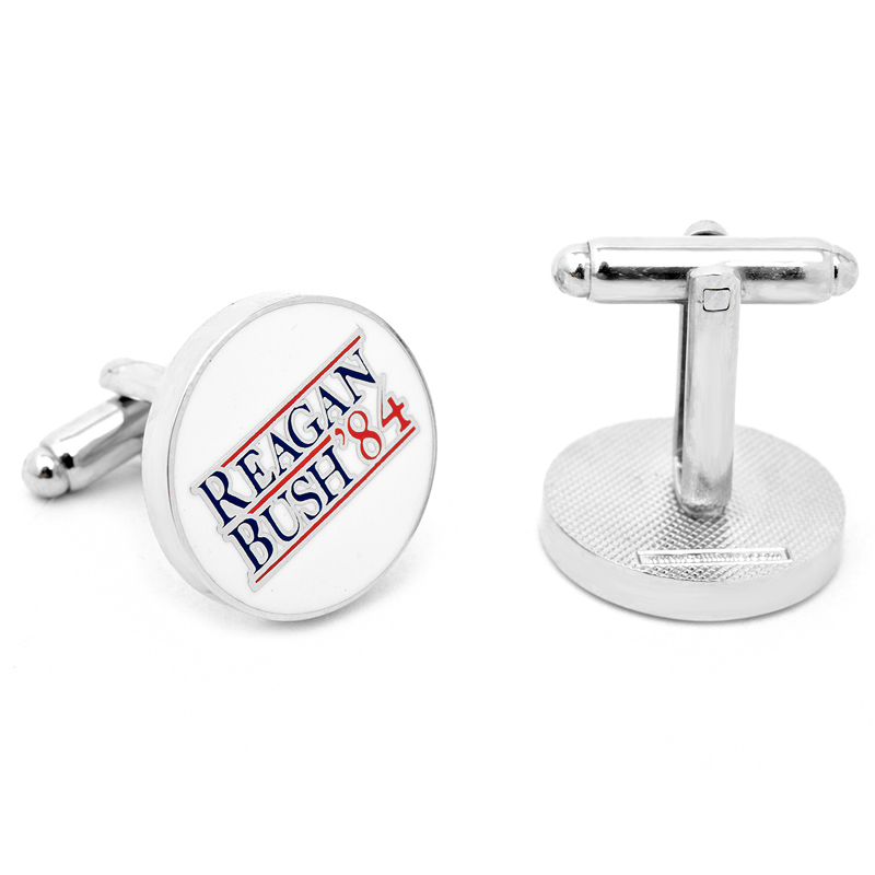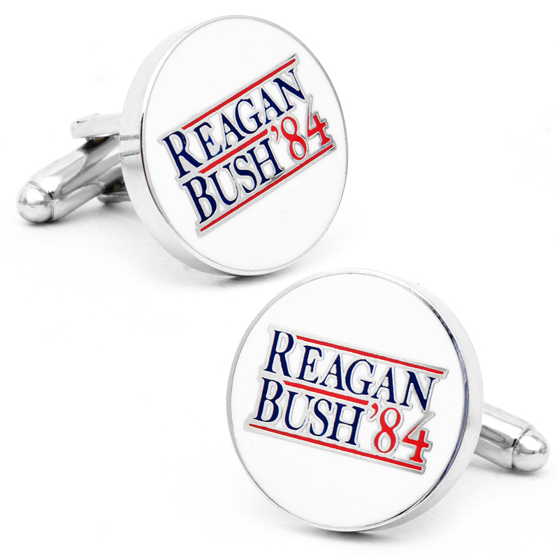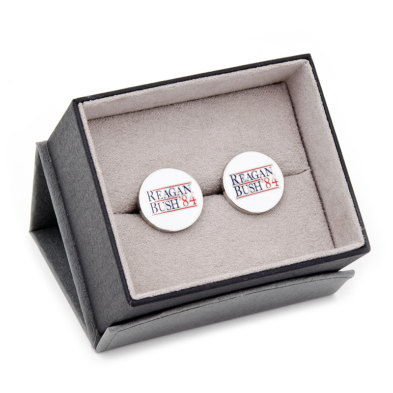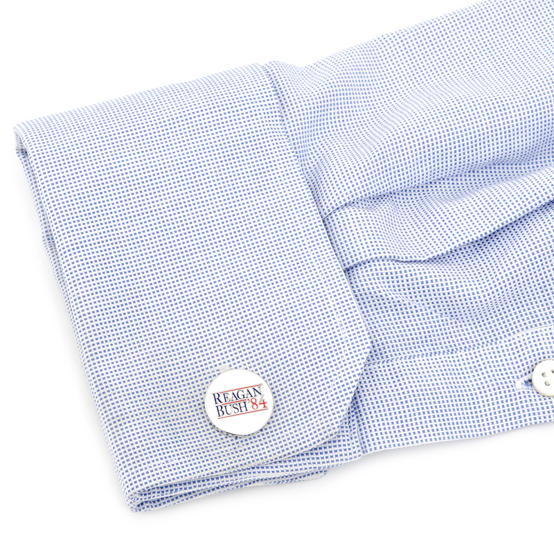 Designed after the iconic Reagan-Bush logo from the 1984 campaign, and constructed from rhodium plated base metal and enamel, Reagan-Bush Cufflinks are an iconic piece of political history. Cast your ballot in style with Republican 1984 Reagan-Bush Button Cufflinks. Cufflinks by Cufflinks, Inc.