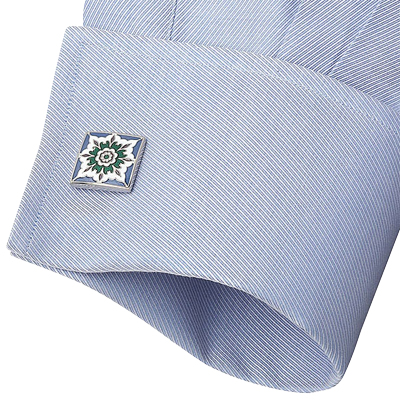 The Alpine Crown Cufflinks from the L2 Collection feature metallic enamels perfectly positioned inside a rhodium plated setting. These Alpine Crown Cufflinks will start off your day in style. They are designed by L2 and are made from rhodium plated silver and enamel. They feature a beautiful floral pattern created by Periwinkle, French blue, and alpine green enamels on a shiny silver frame. This Cufflinks by L2. - Approximately 3/4" x 3/4" - Silver Plated - Flip back closure.