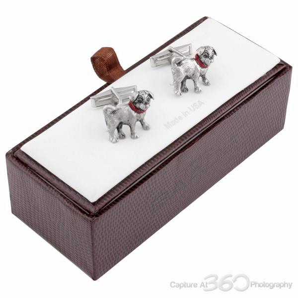Our Antique Hand Painted Pug Cufflinks feature an adorable little pug pup that has been hand crafted by american designer Baade. Featuring a beautifully sculpted pug, made from highly polished rhodium metal (that is resistant to tarnishing) that has been delicately antiqued, these cufflinks are perfect for dog lovers everywhere. They are even hand crafted and hand painted to add a perfect accent color to all your french cuffed sleeves.