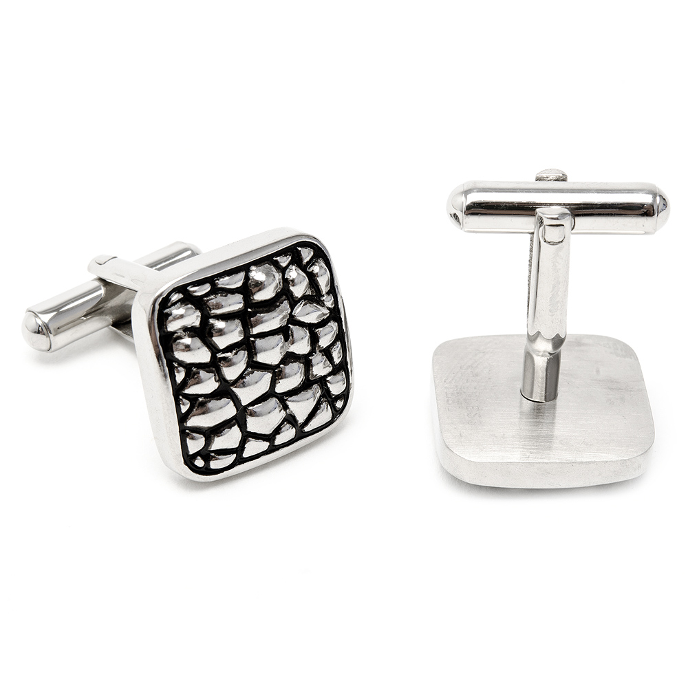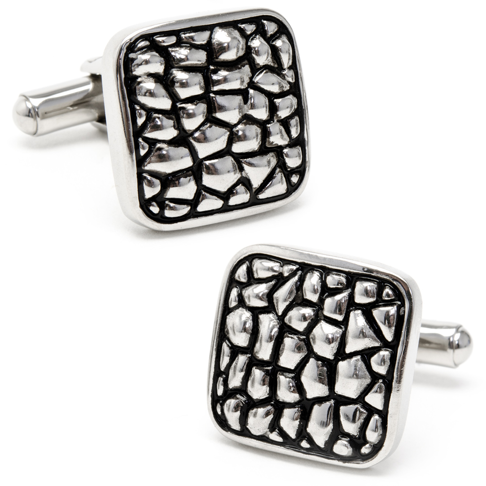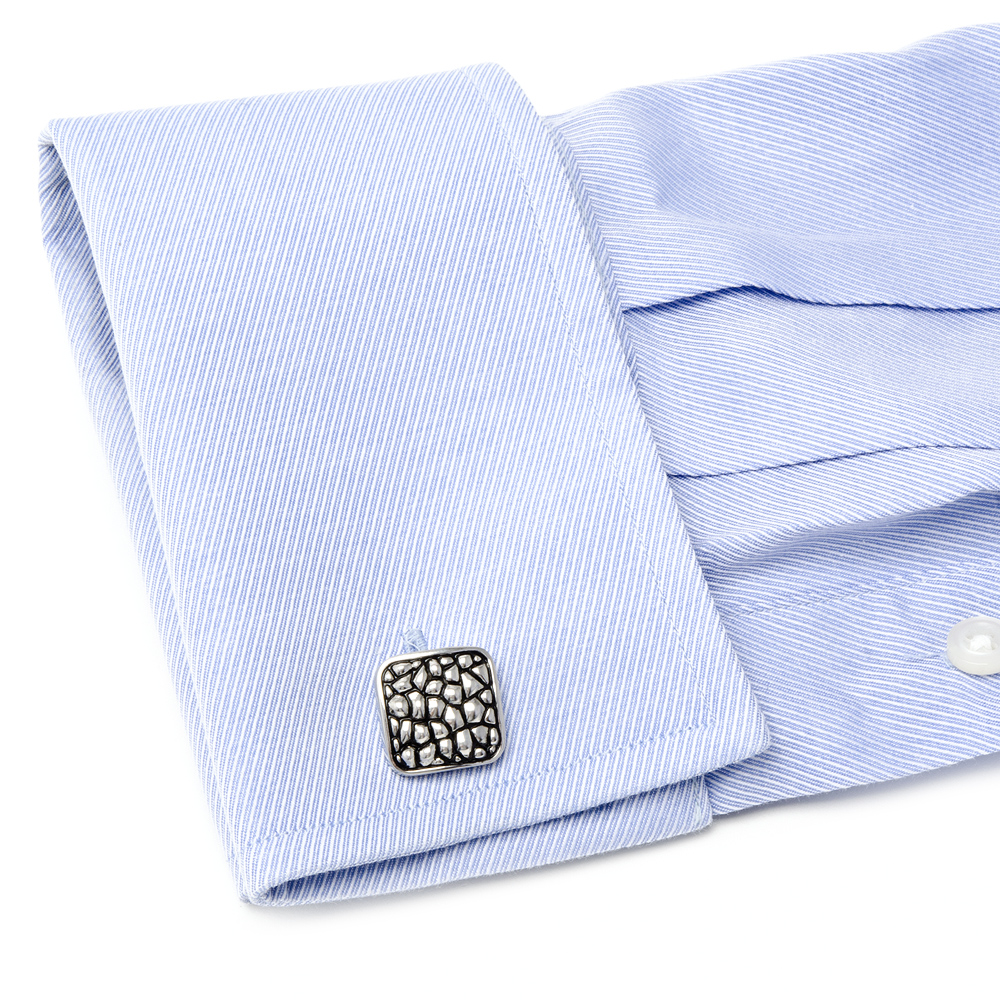 Sleek and timeless, these antiqued metal mosaic cufflinks feature a stainless steel with antique silver finish and bullet black closure. Cufflinks by Ox & Bull Trading Co.