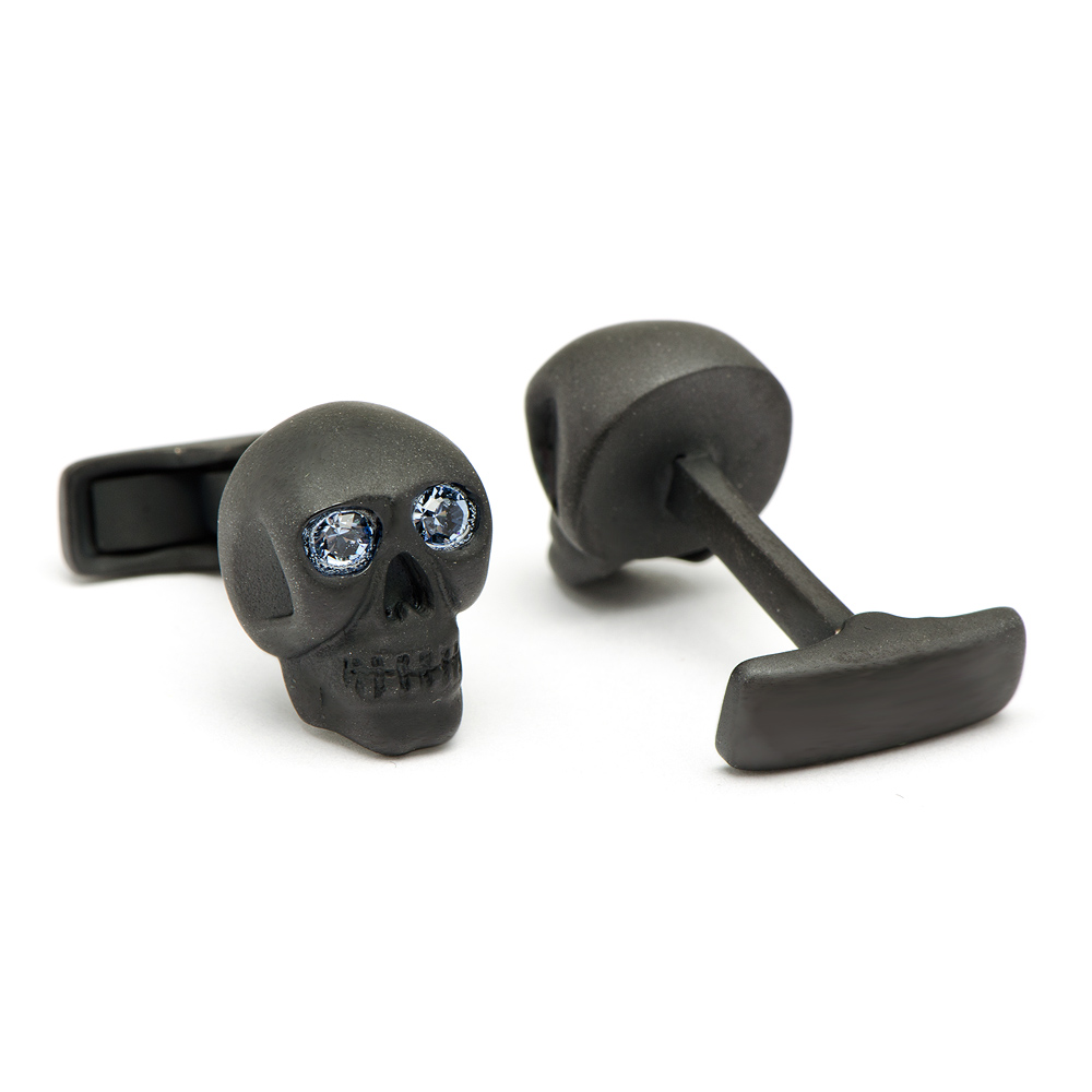 - Diamond Eyed Matte Black Skull Cufflinks