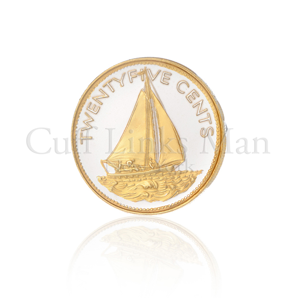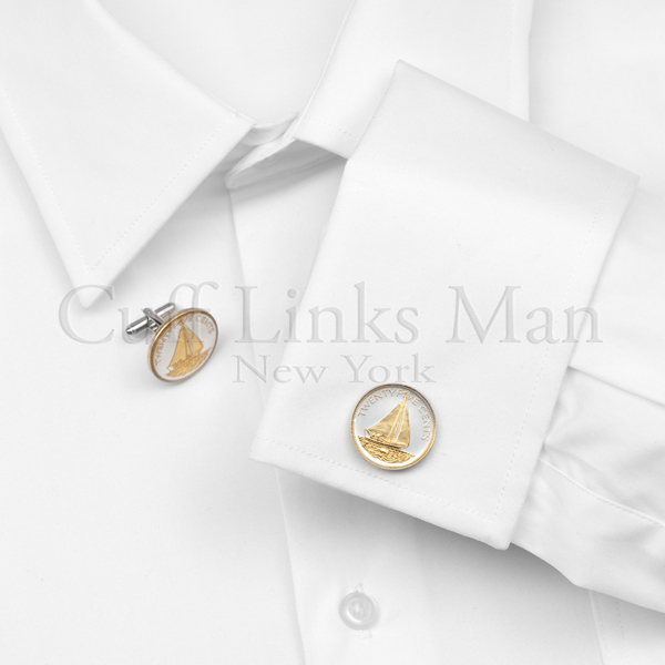 Each one of these real coins from around the world is first layered in pure bright silver. Then, by hand, the figures of each are highlighted and brought to life with rich, pure 24KT gold. This breathtaking work, done exclusively by J & J Jewelers, turns these coins into stunning and true works of art. The high-quality design and craftsmanship is truly incredible. These Bahamas 25-Cent Sailboat Cufflinks look so real, you’d think you could use them to pay the bill next time you are out at a fancy dinner. Don’t get swallowed up by the winter doldrums. Add a little sunshine into your life with a pair of Bahamas 25-Cent Sailboat Cufflinks instead. If you’re a man who loves to collect coins, has an extensive cufflink collection, or enjoys vacationing on tropical islands, then these Bahamas 25-Cent Sailboat Cufflinks are the perfect accessory for you.
