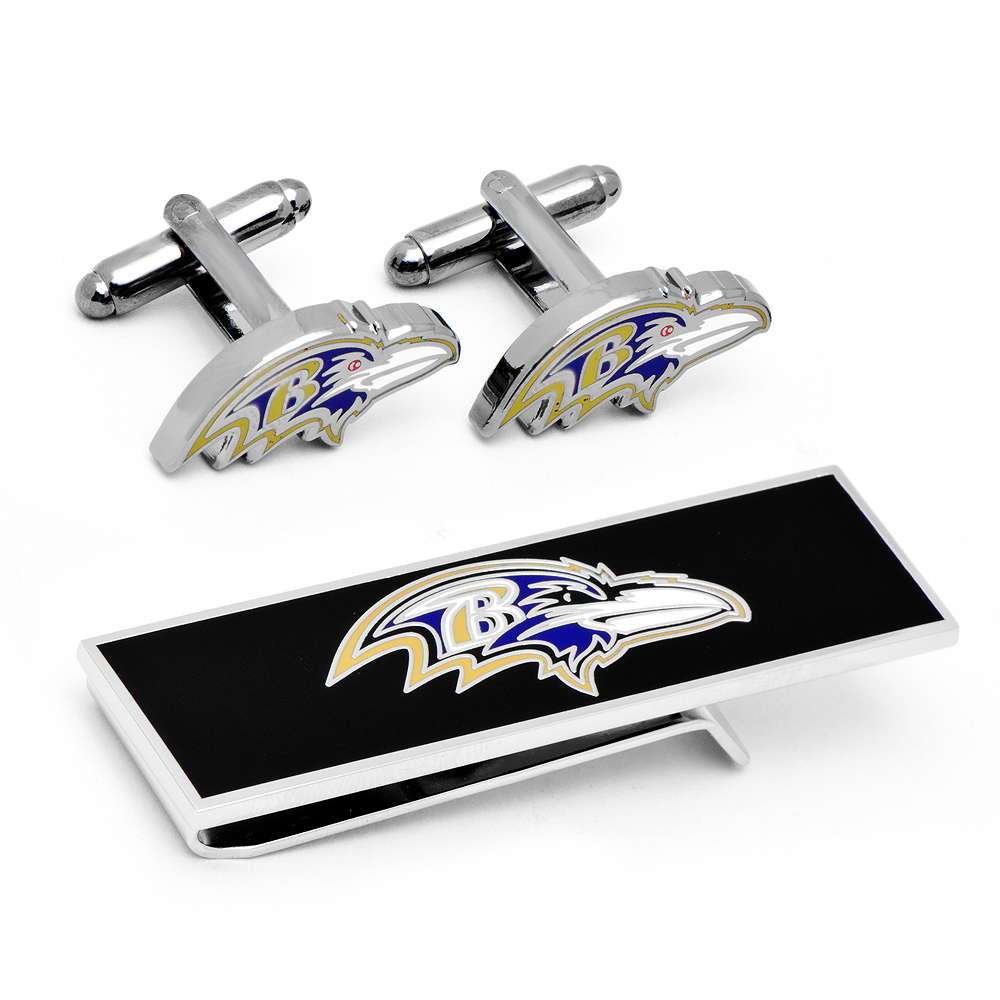 Give your favorite Ravens fan the Baltimore Ravens Head Cufflinks and Money Clip Gift Set! This Gift Set Includes Pair Of Cufflinks And One Money Clip. Officially Licensed By NFL.