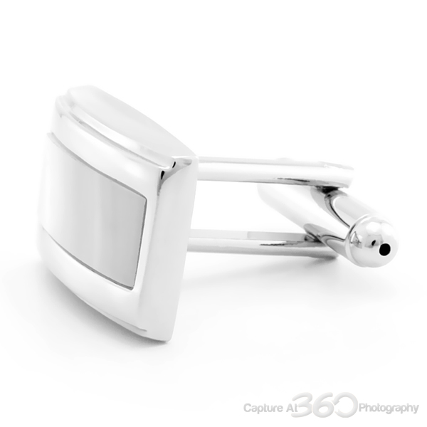 These Basic Mother of Pearl Stripe Cufflinks are the perfect staple jewelry piece to add to your cufflinks collection. They feature a solid silver plated metal backdrop with a rectangular strip of geniune mother of pearl, shaded in a slightly beige hue. They will look wonderful on all french cuffed shirts, including both light and dark colors.