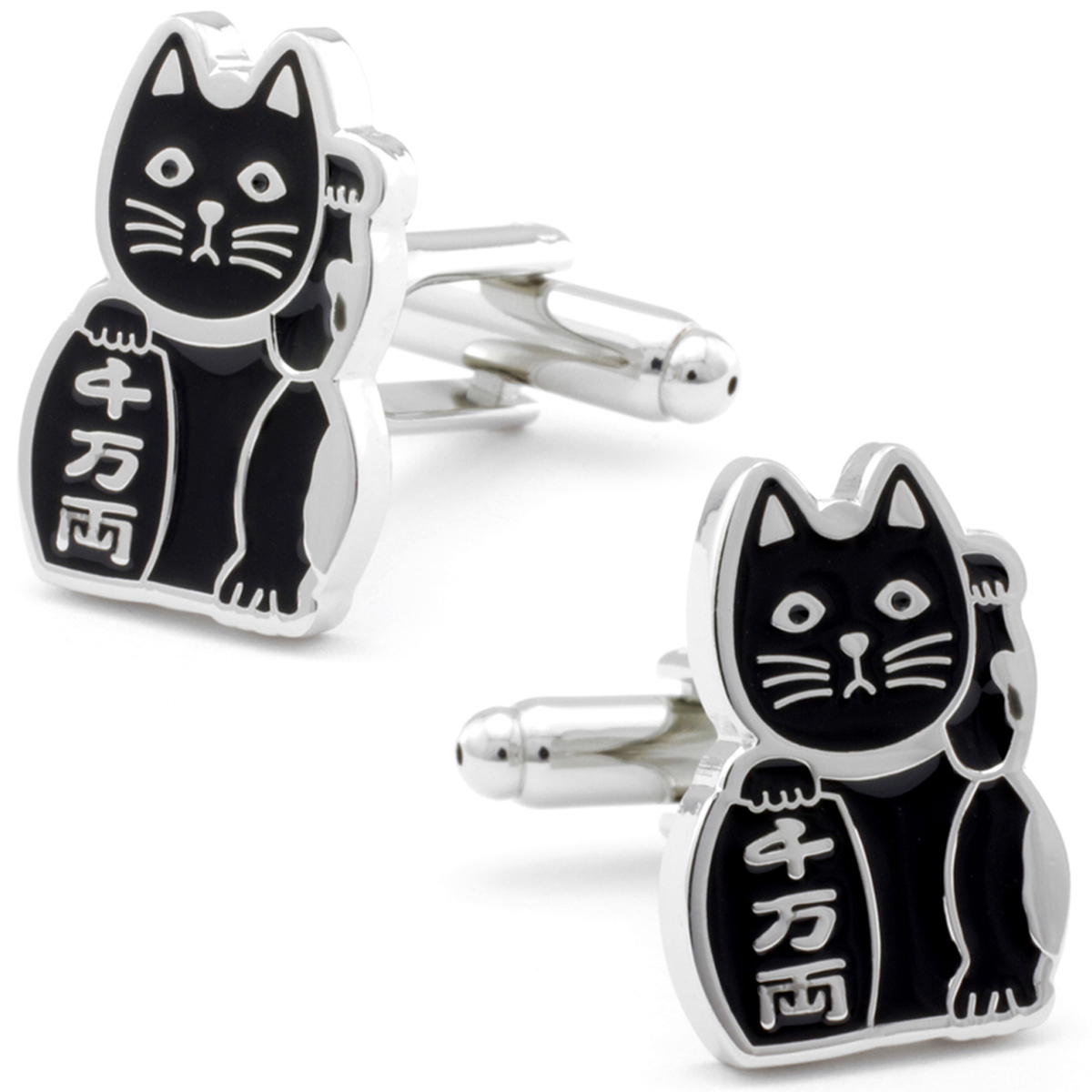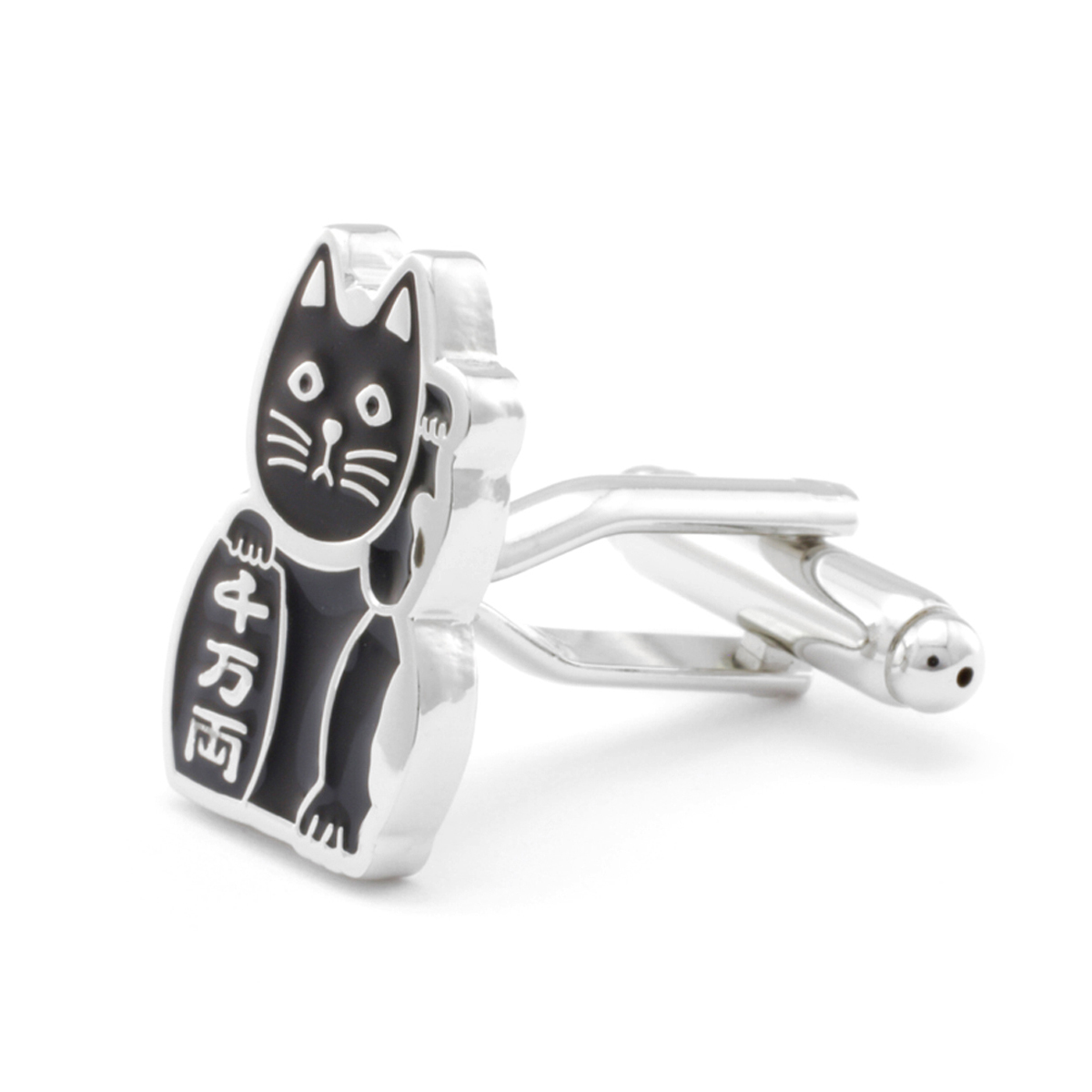 Maneke Neko, the ubiquitous beckoning cat, Is Captured In black Enamel for a symbol of wealthy wishes also Supporting safe and enjoyable travel and attracting helpful people. Pick up a Lucky Cat for your cuff today!