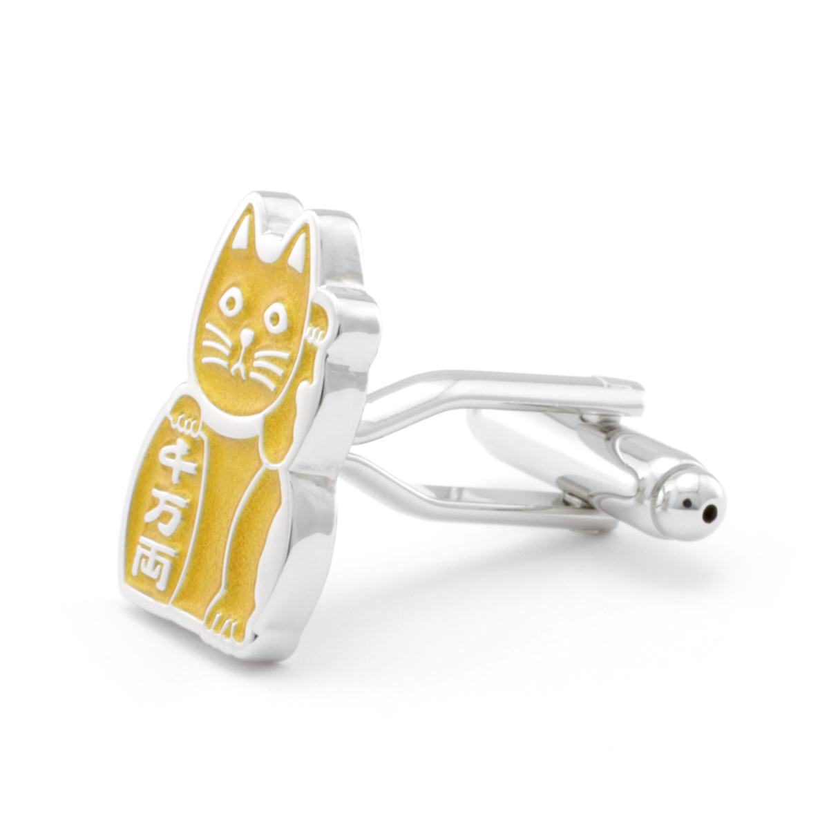 Maneke Neko, the ubiquitous beckoning cat, Is Captured In orange Enamel for a symbol of wealthy wishes also Supporting safe and enjoyable travel and attracting helpful people. Pick up a Lucky Cat for your cuff today!