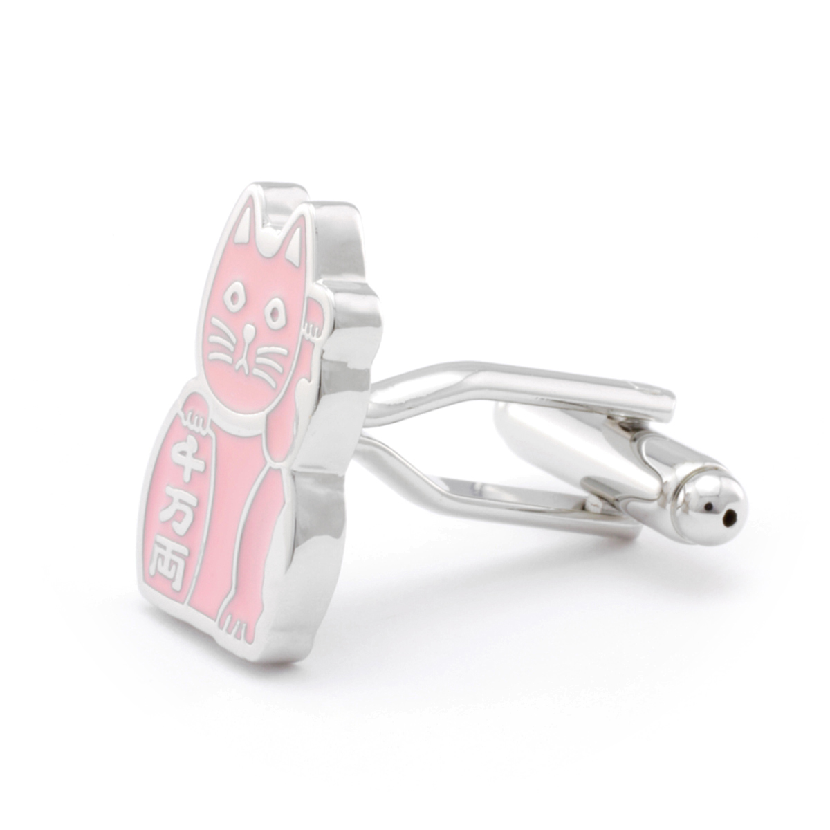 Maneke Neko, the ubiquitous beckoning cat, Is Captured In pink Enamel for a symbol of wealthy wishes also Supporting safe and enjoyable travel and attracting helpful people. Pick up a Lucky Cat for your cuff today!