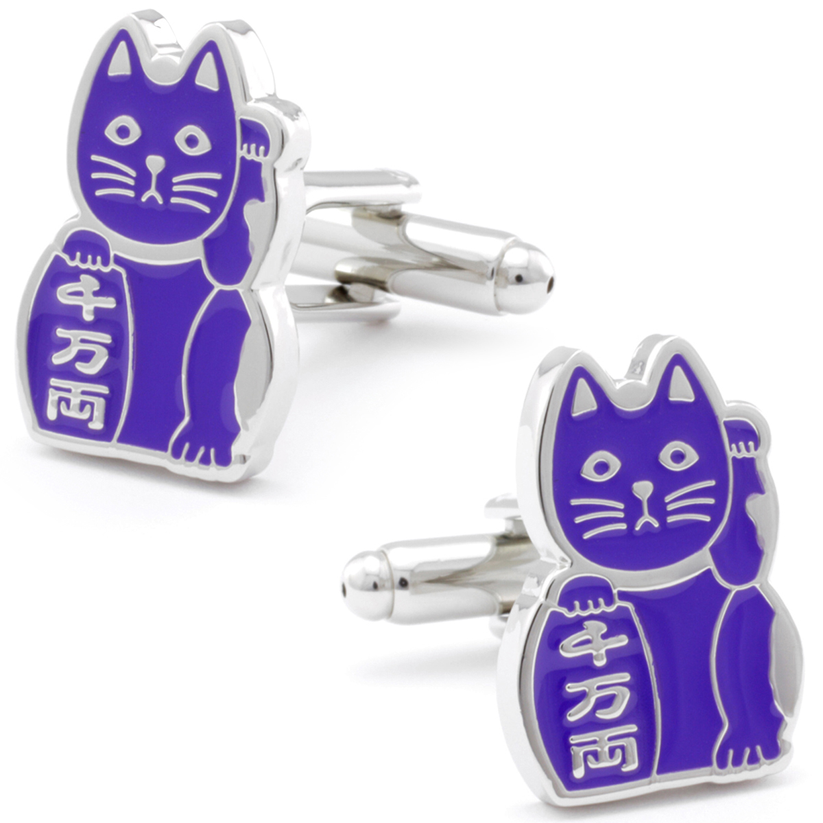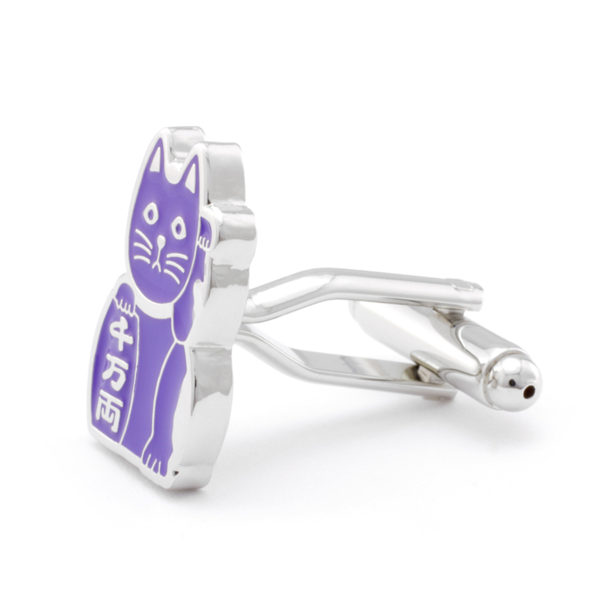 Maneke Neko, the ubiquitous beckoning cat, Is Captured In purple Enamel for a symbol of wealthy wishes also Supporting safe and enjoyable travel and attracting helpful people. Pick up a Lucky Cat for your cuff today!