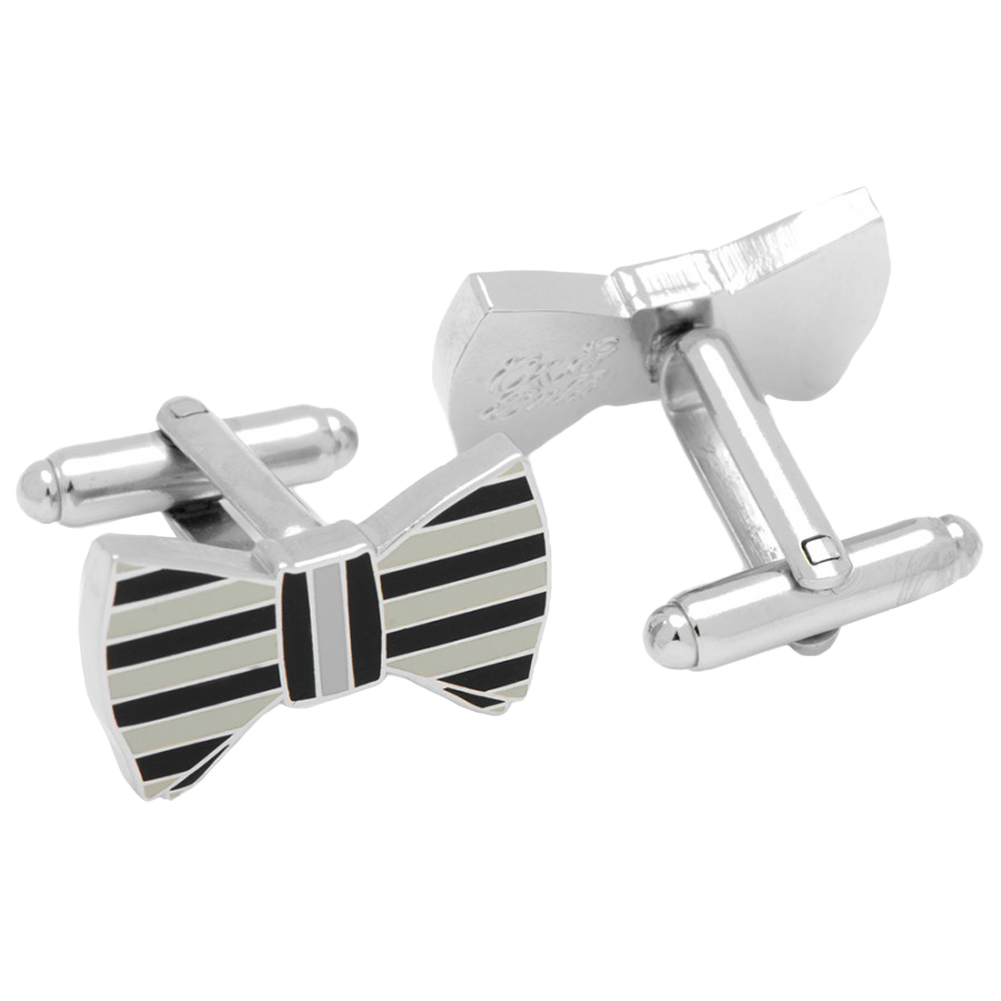 Black and Grey Horizontal Striped Bowtie Cufflinks