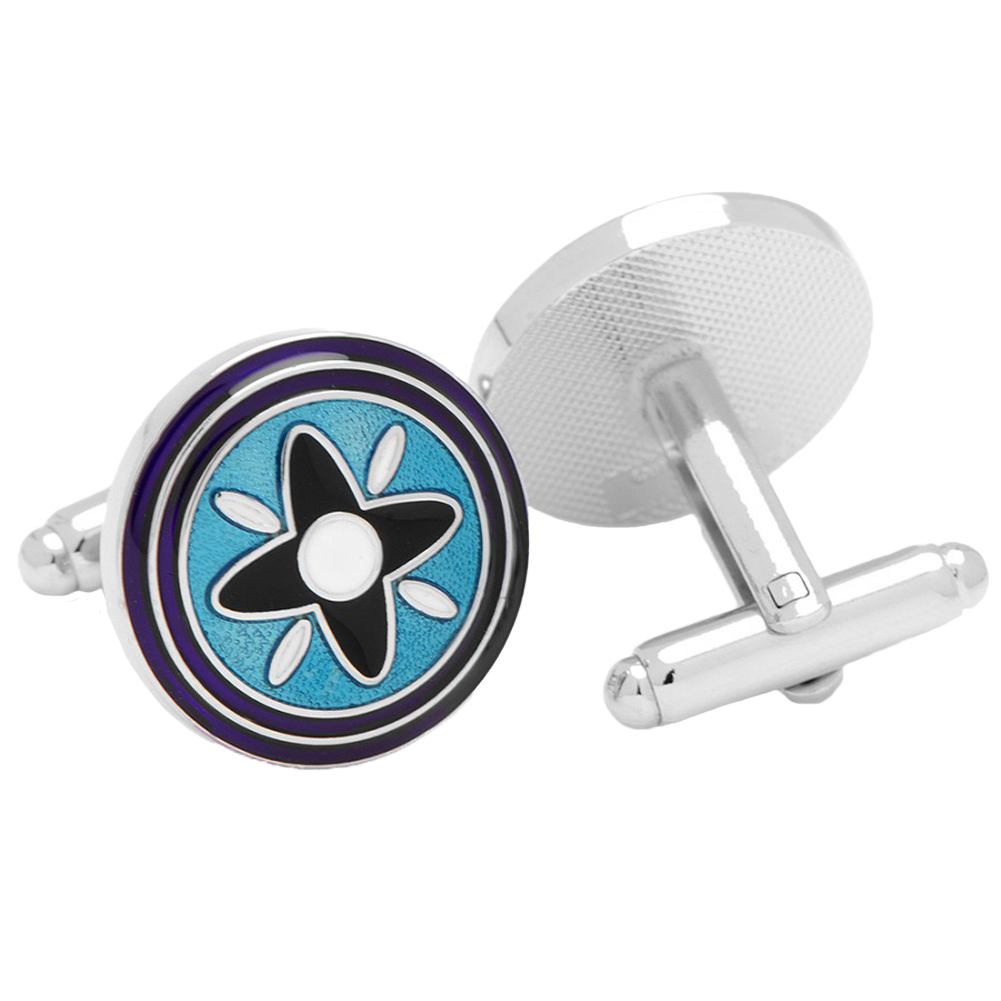 Approximately 3/4" diameter. base metal with enamel. Bullet back closure