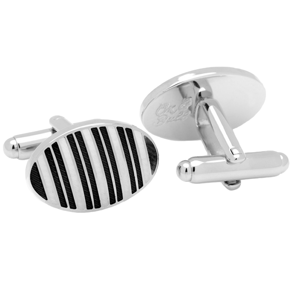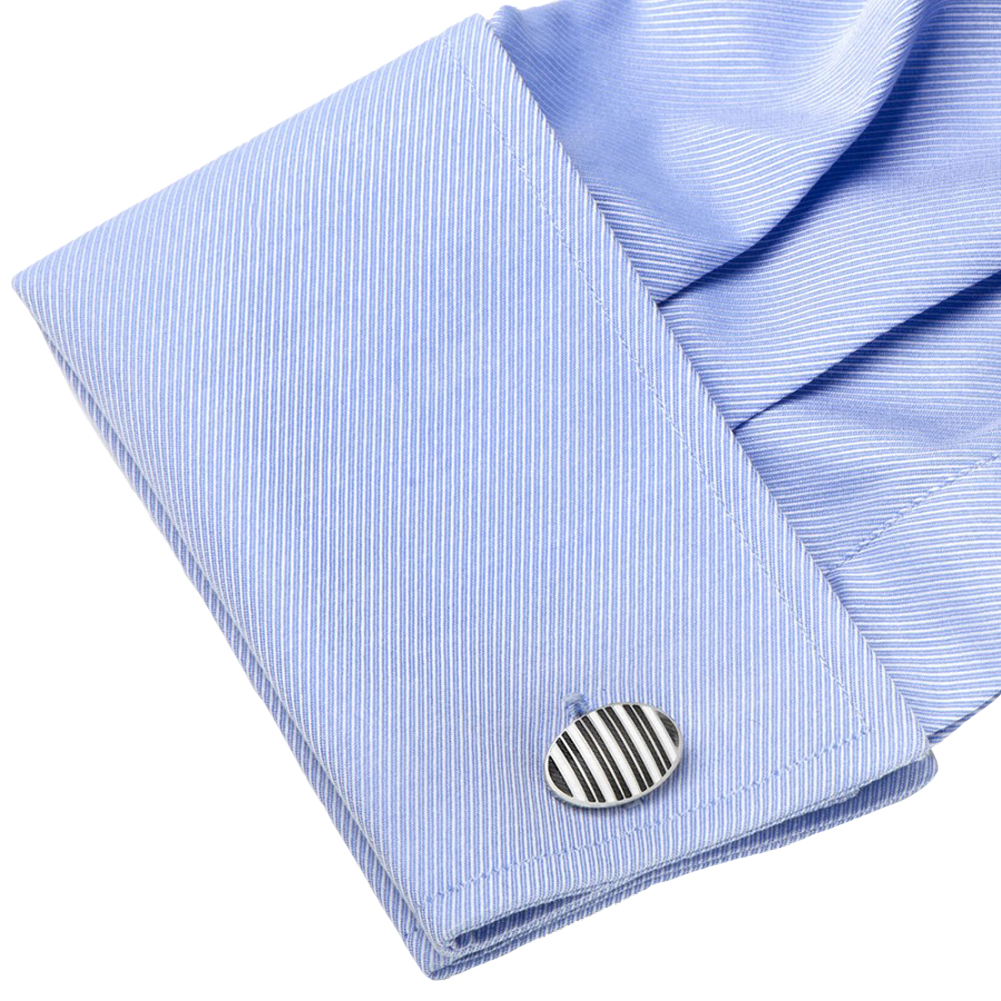 Black and White Oval Repp Stripe Cufflinks