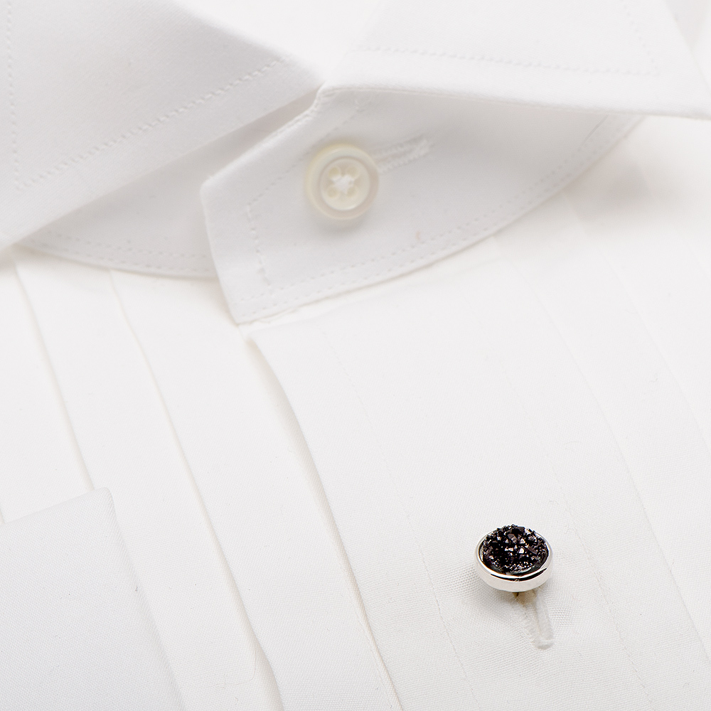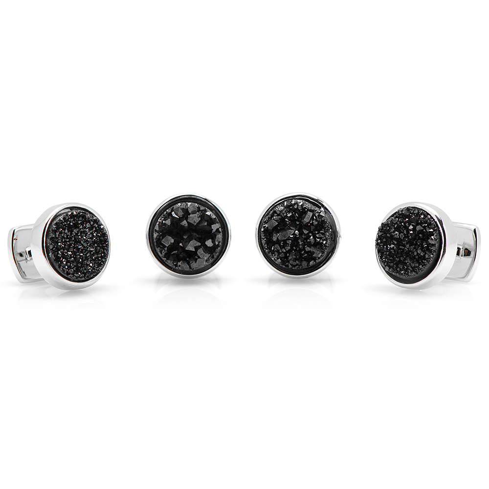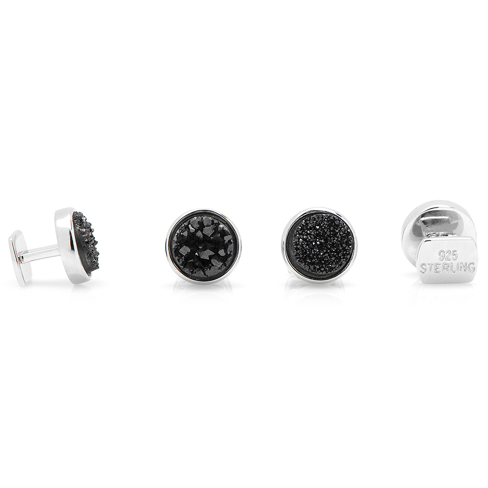 The cufflinks are push-through style, one solid piece of sterling silver which can be pushed through the cuffs and secured on the under-side. Approximately 1/2" in diameter.