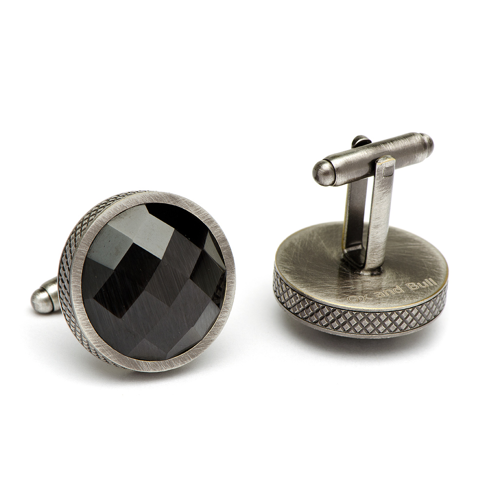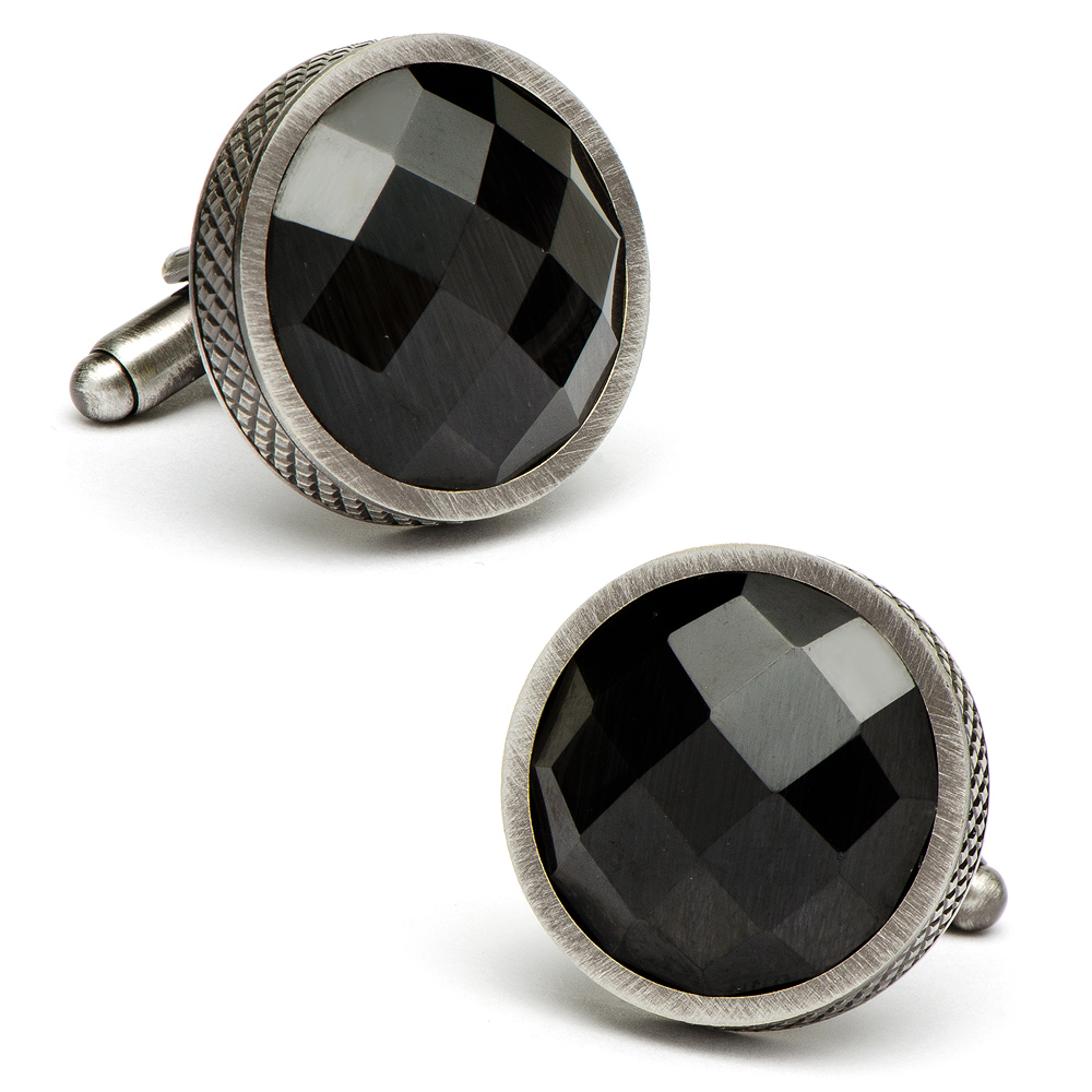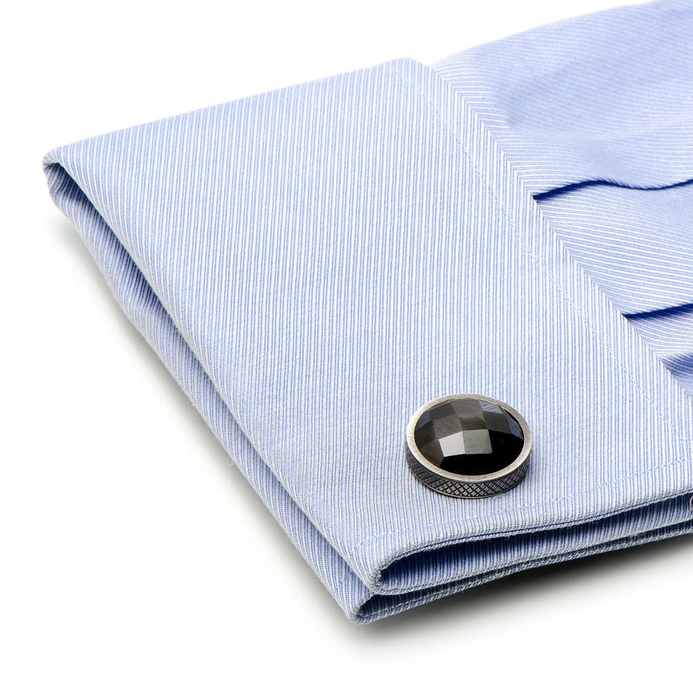 - Oval Checkered Violet Cats Eye & Onyx Cufflinks