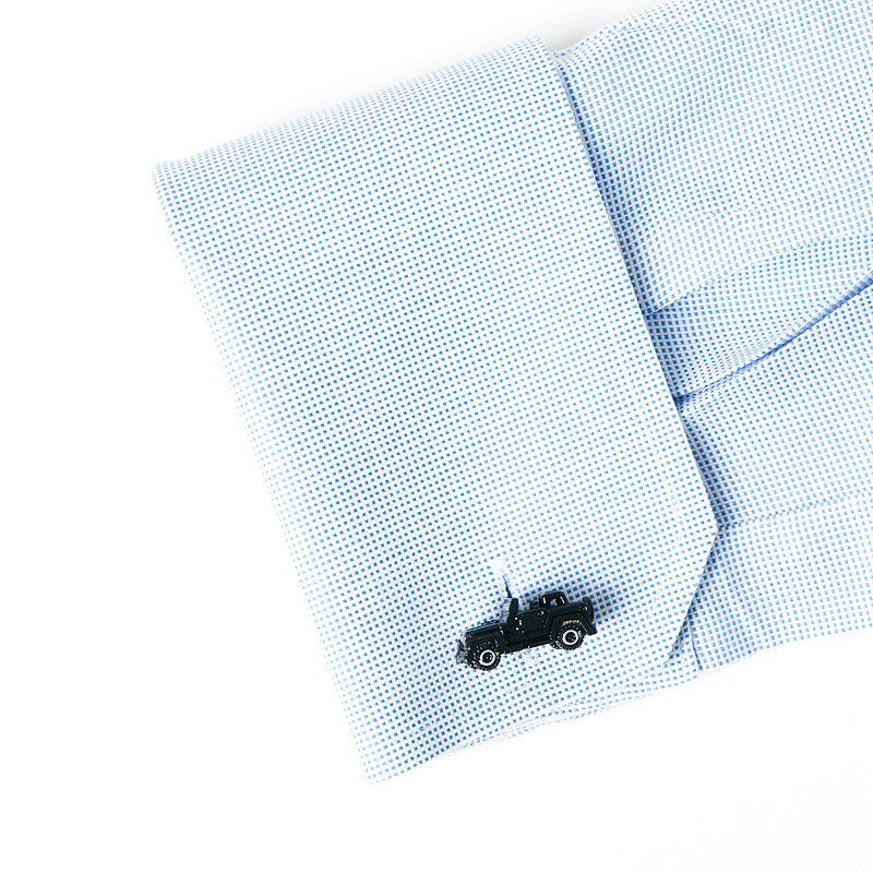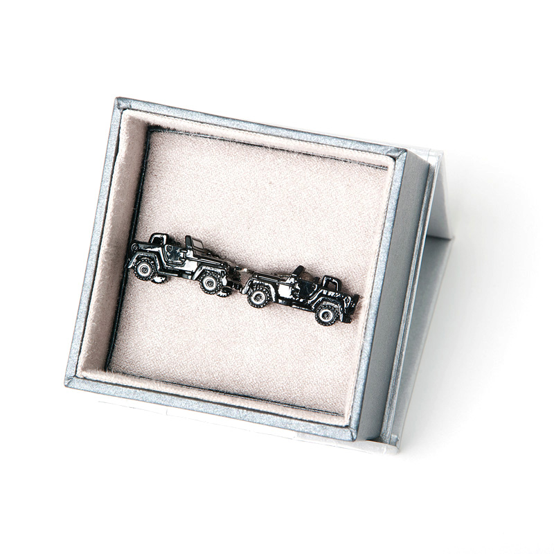 If you're the kind of guy that likes to go off-roading, these Jeep inspired Black Off-Road Vehicle Cufflinks will look right at home on your sleeve. Let everyone know about your passion for off-road activities while you're at a wedding, a business meeting, a holiday function or special event. Off-Road Cufflinks will add the finishing touches to your dress shirt. Approximately it will measure 1/8" x 3/8" in dimension. It is Rhodium plated base metal and enamel with bullet back closure. Gift boxed. These Black Off-Road Vehicle Cufflinks are perfect for the Off Road enthusiast. Each pair is set in a bullet back setting and designed to ensure the highest quality. Included with every pair of links is a black carrying bag.