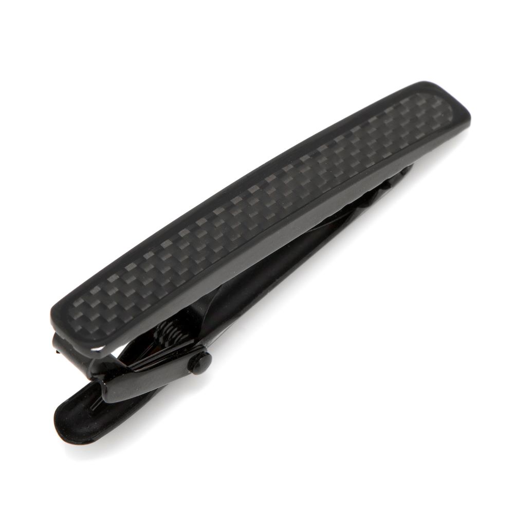 Both masculine and fashionable, black carbon fiber is inlaid into a black plated stainless steel tie clip.
