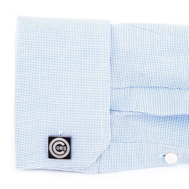 These cufflinks are Edgy, understated tone on tone version of the classic Chicago Cubs. Black plated cufflinks with a gunmetal finish.Officially licensed MLB product. Officially Licensed MLB Cufflinks. Celebrate the home team in style. Cufflinks constructed of enamel on a silver plated setting. Cufflinks feature a bullet backing for easy application. Its Spice up those old boring links with these Chicago Cubs Cufflinks! Featuring a bold graphic with a bullet back closure, these cufflinks are a perfect gift for a true fan.