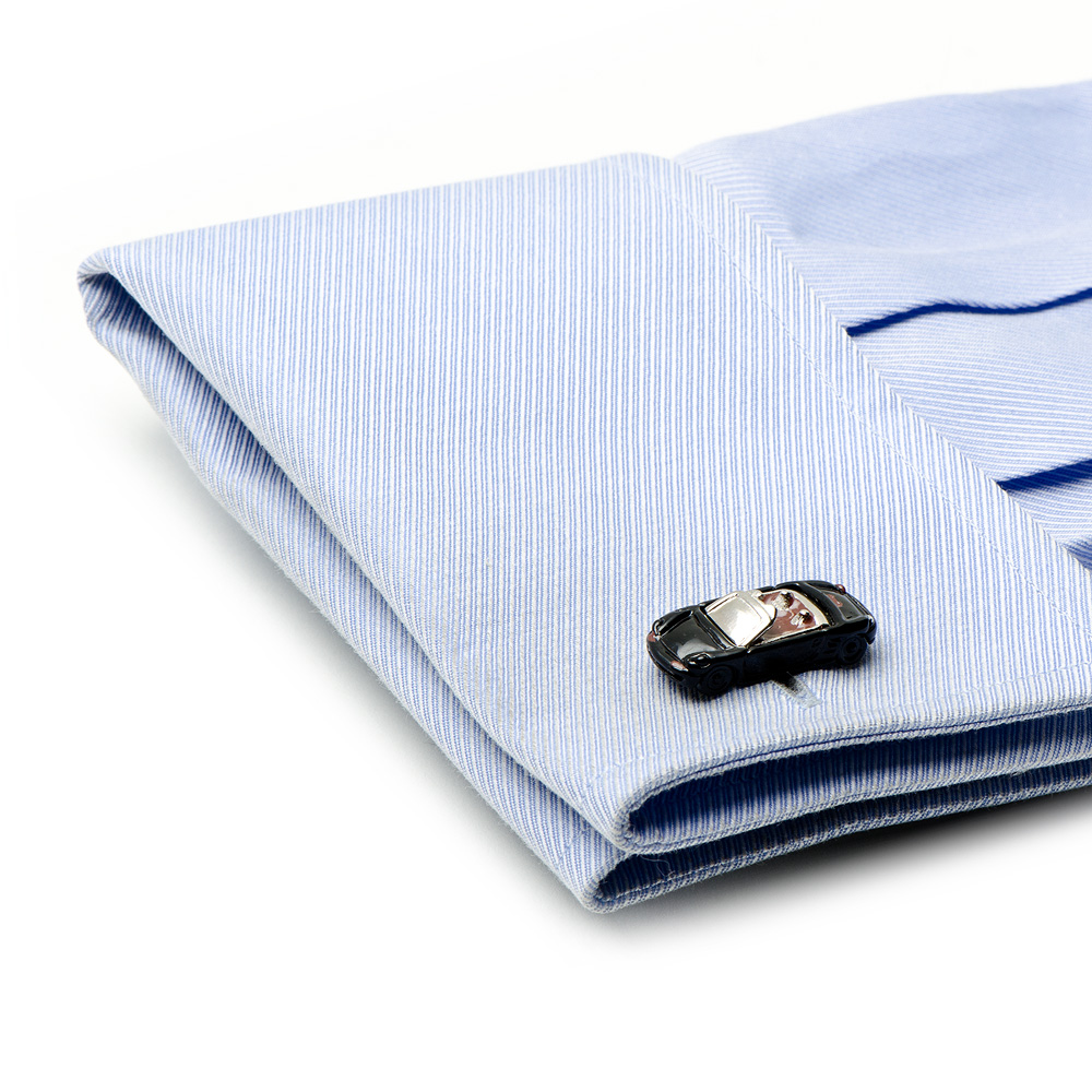 It is Black Sportscar Convertible Cufflinks for racer lover. There is nothing in the racing world that beats a classic Black Iconic Car Cufflinks. Rev up your outfit with a pair of Black Iconic Car Cufflinks. Perfect for any Indy race fan, these Black Sportscar Convertible Cufflinks feature incredible detail right down to the shape and design of the car.