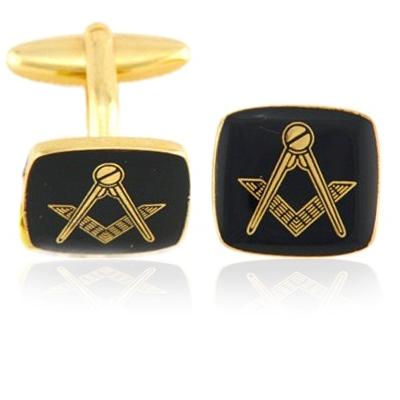 Black square Masonic cufflinks. The symbol set square and compass design featured in these bold black square Masonic cufflinks is universally recognized as a symbol of Freemasonry. The set square and compass are both architect's tools, and typically represent good judgment discernment. The set square and compass are both architect's tools, and typically represent good judgment discernment. Wear these stylish black square Masonic cufflinks for a touch of stylish sophistication that is perfectly suited for business meetings and general office wear.