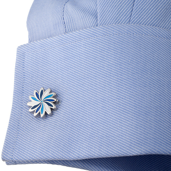 These Stylis Blue Daisy Cufflinks are made to the highest standard and presented in a beautiful gift box. Blue Daisy Cufflinks LOMA II Designer cufflinks featuring expert enameling over a plated silver setting. Features a bullet backing for easy wear. Blue Daisy Cufflinks. Designer cufflinks featuring expert enameling over a plated silver setting. Features a bullet backing for easy wear.