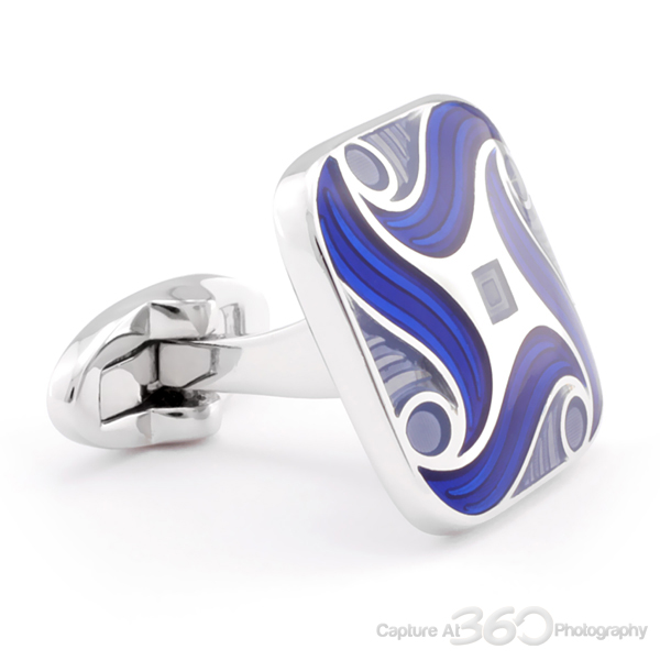 The blue and silver colors in the Florentine Swirl Cufflinks will pop on your sleeves, especially when you combine them with a strong solid color suit. The square cufflinks feature a rich toned blue swirl pattern over a radiant lighter blue background with silver accents. Great artistic and abstract design to enhance your repertoire or as a gift.