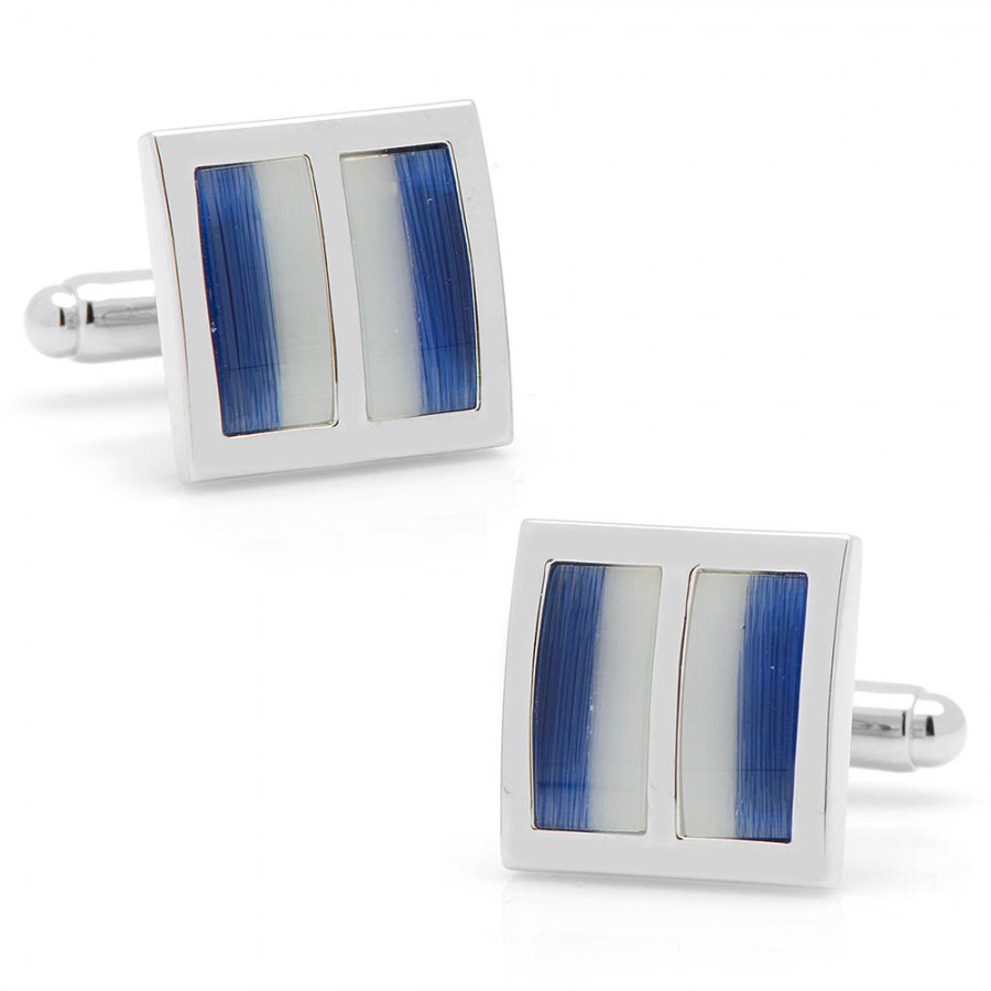 Approximately 5/8" x 5/8" Silver plated with blue cat's eye Bullet back closure.