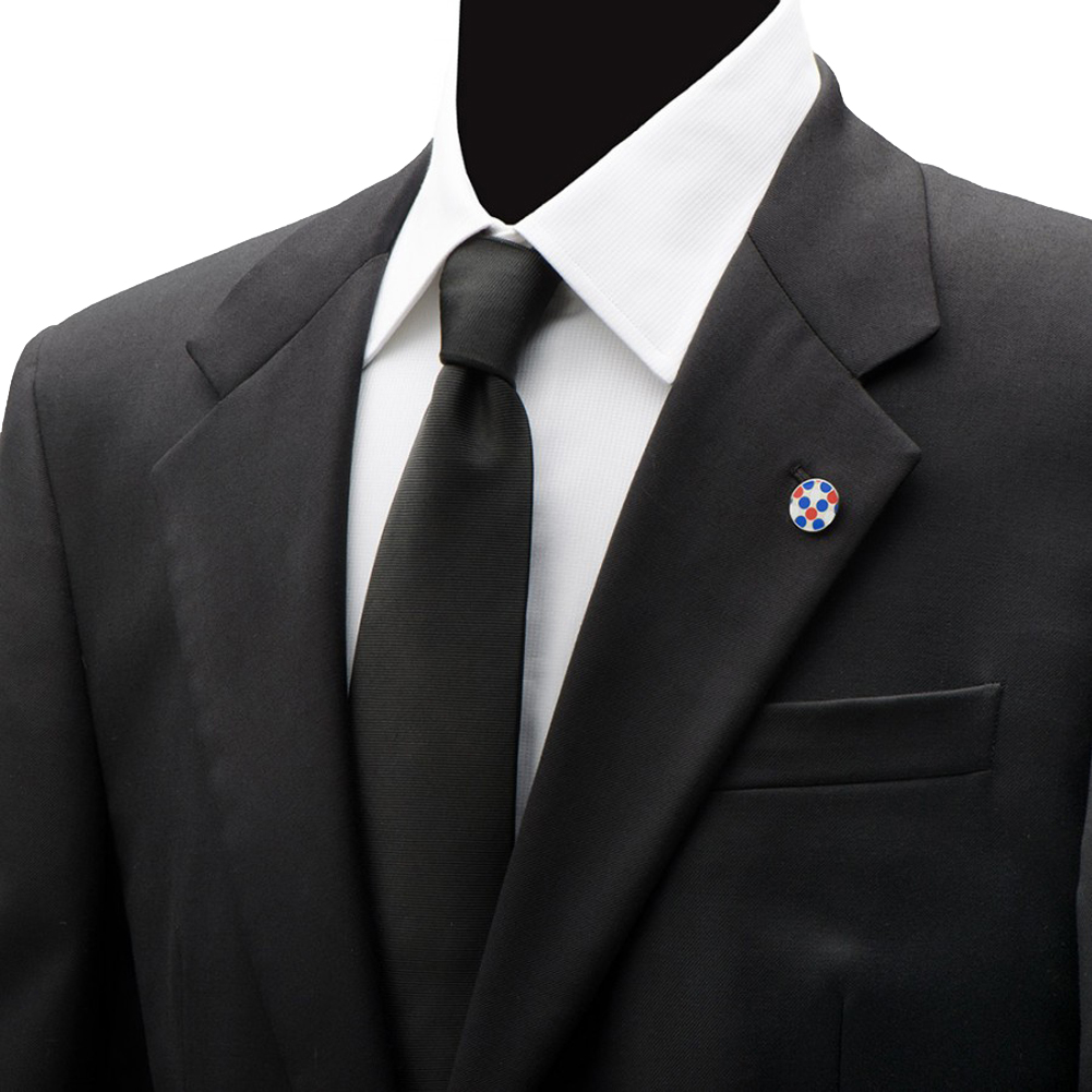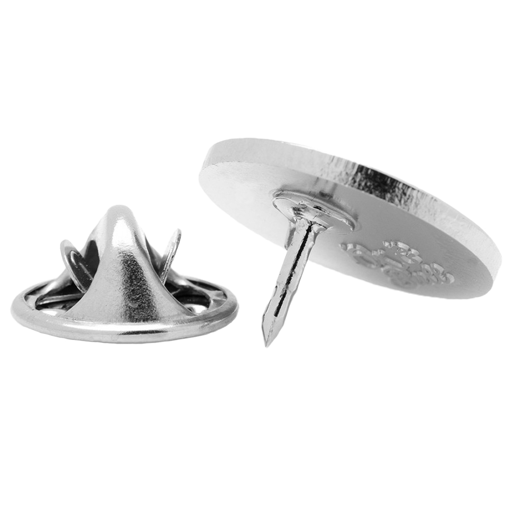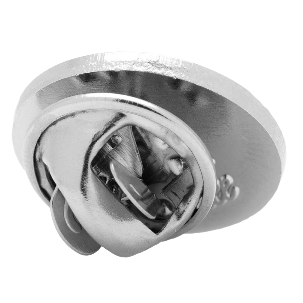 Approximately 5/8" diameter. base metal and enamel. Clutch back closure