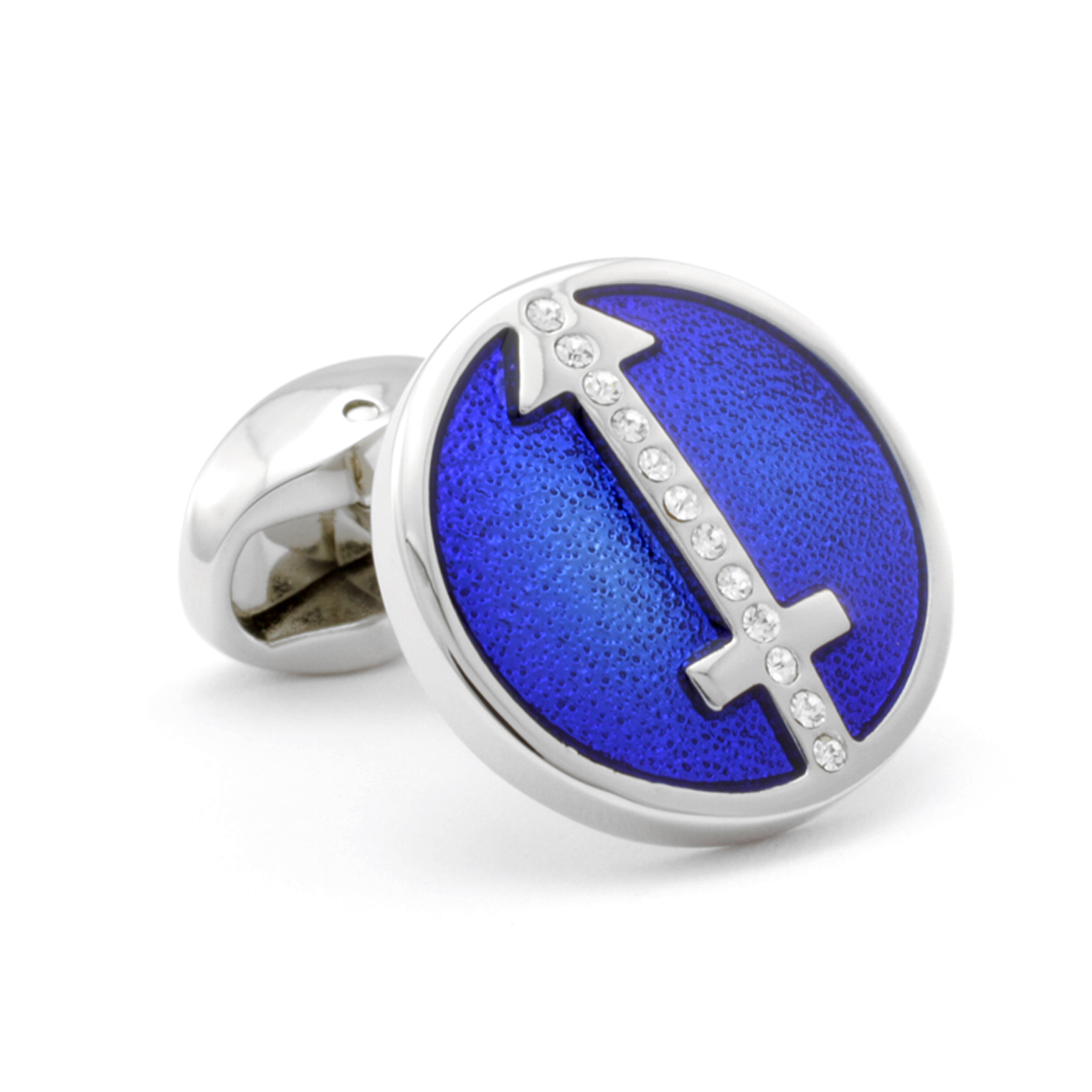 Next time you want to really make a fashion statement, try a pair of our Blue Round Diamond Cufflinks. These exotic, extra terrestrial purple cufflinks feature a beautiful blue stone encrusted with delicate clear diamond on the center like arrow.
