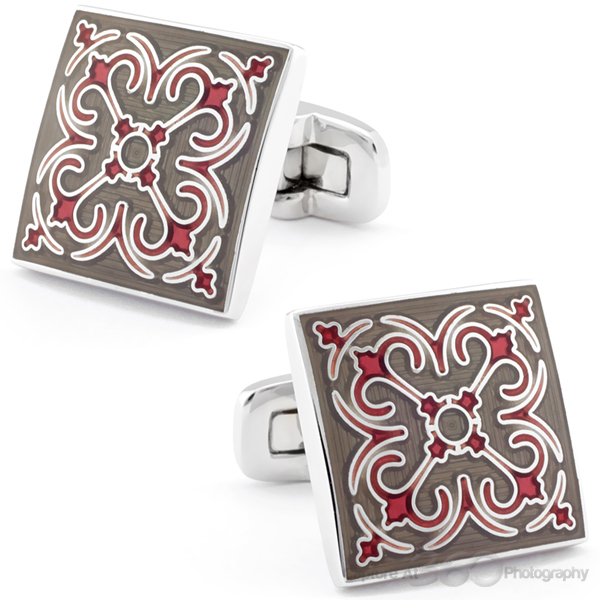With these Brown Regal Shield Cufflinks you will exude and aura of confidence. The intricate design features a rich red colored code of arms over a light brown background on a square cufflink accenting your look. A great pairing with red, brown, pink, white, and various light colored shirt, these cufflinks will definitely be an appropriate finishing touch for your look. These rhodium plated cufflinks underwent a strict plating process to prevent cufflinks from discoloration and the whale back cover ensures that the cufflinks fit smoothly and securely into your cuffs. A perfect gift and a great addition to your collection.