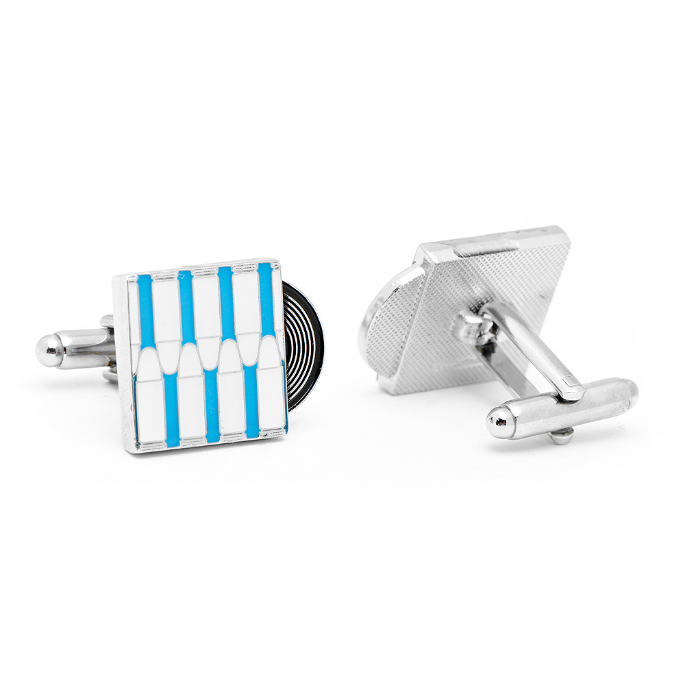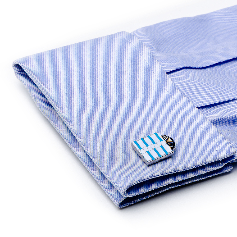 Bullet the Blue Sky Record Cufflinks. Approximately 5/8" x 7/8", Plated base metal and enamel Cufflink with Bullet back closure. Cufflink by Cufflinksinc.