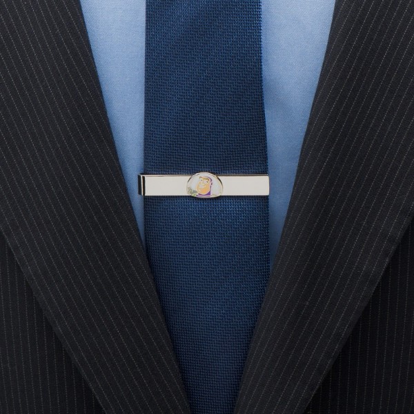 Approximately 2" x 3/8". Plated base metal and enamel. Sliding tie bar. Officially licensed by Disney.