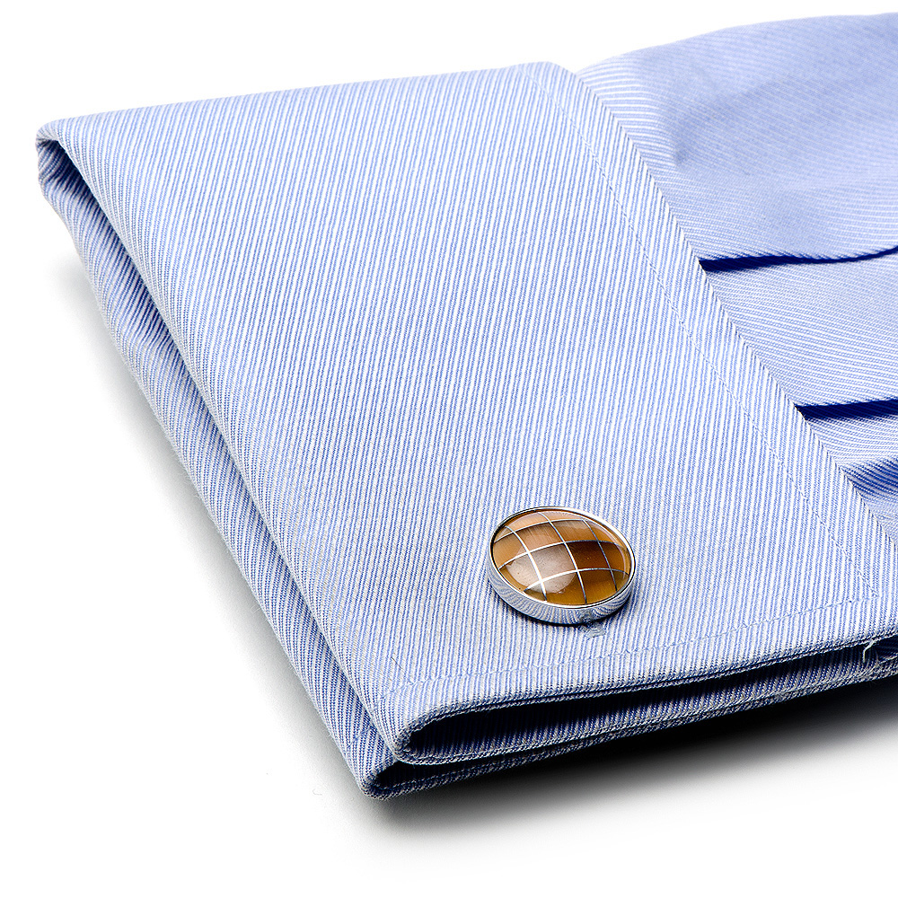 Just get your head out of the clouds! These checkered Caramel cloud cats eye cufflinks will help keep your feet on the ground. Alternating shades of orange and cotton. It is Silver-plated. Polished to perfection. Cuff link's diameter: 3/4". Presentation box is included.