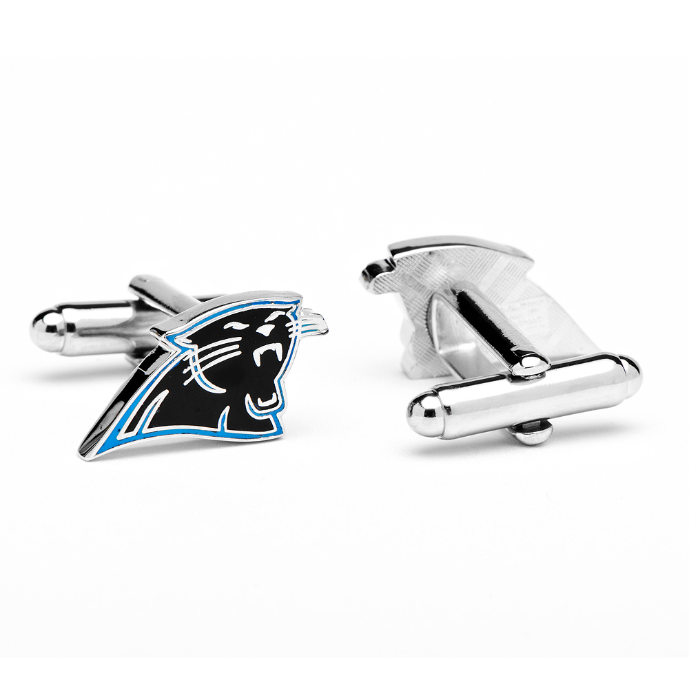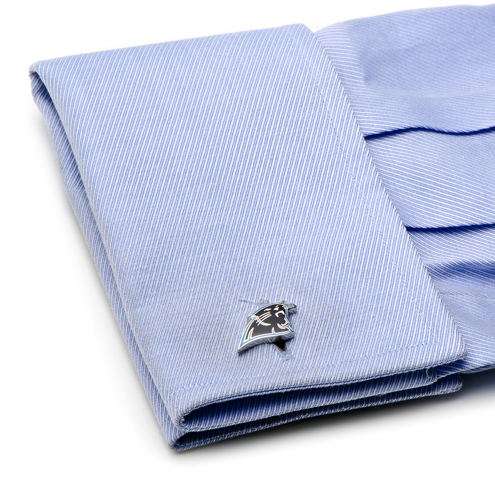 The official logo of the National Football League’s Carolina Panthers. Enamel finish cufflinks on a nickel plated backing.