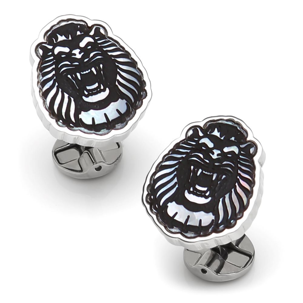 Roar like a lion and celebrate Aladdin's Cave of Wonders with these dramatic cufflinks. Pairing stunning Mother of Pearl tiger stripe details with deep black recessed metal, these bold cufflinks will be the talk of your next event.