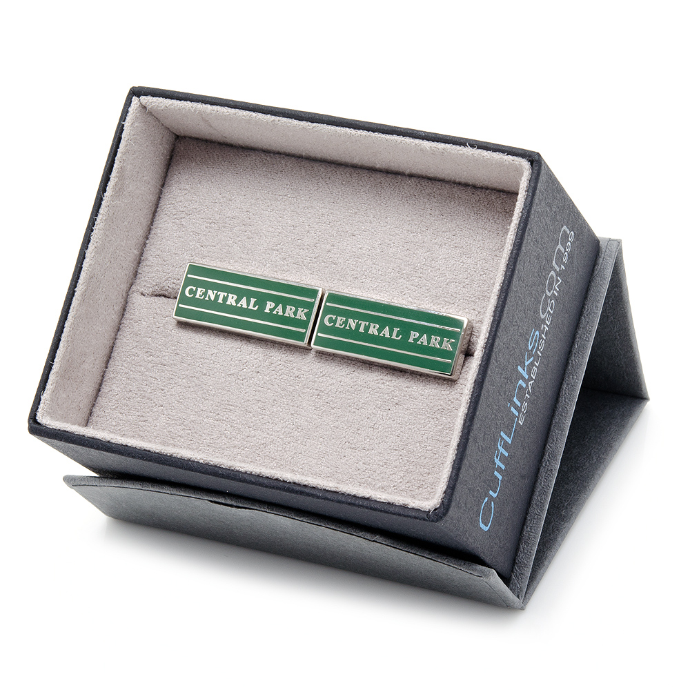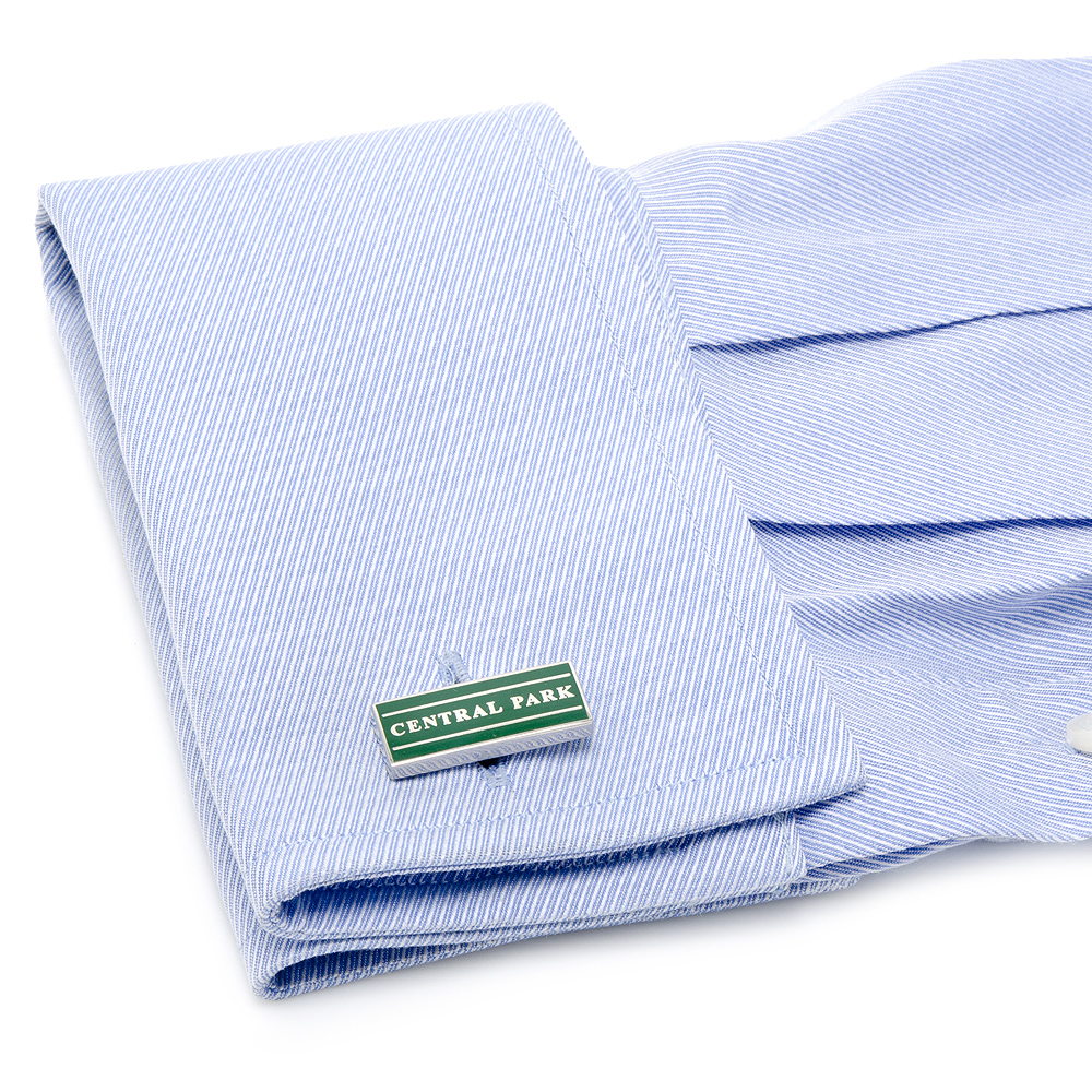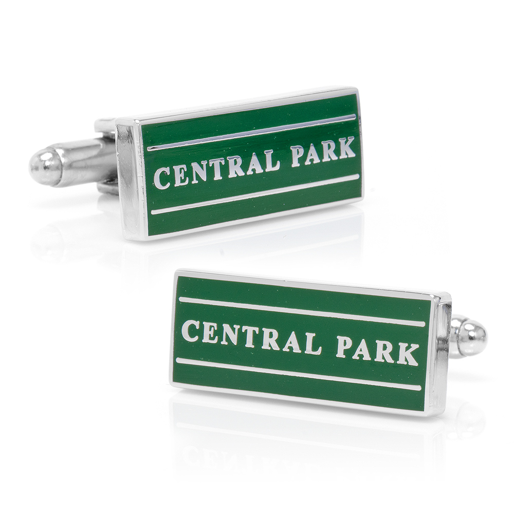 Take a piece of the Big Apple with you wherever you go! Arm yourself with these constructed of plated base metal and enamel Central Park Sign Cufflinks and every day will be like a walk in the park. Approximately 1"" x 3/8"", base metal and enamel. Bullet back closure.