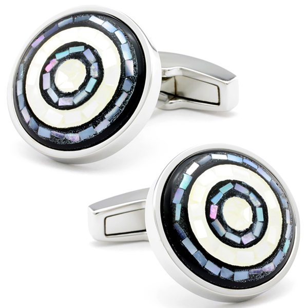 Mosaic Mother of Pearl. Meticulous craftsmanship and the finest materials...The continuously evolving Daniel Dolce Italy collection of mother of pearl cufflinks are created from handmade glass, semiprecious and vintage stones, and sterling silver. This line also includes collar stays and pins, tie bars, and formal sets. These accessories of circular pavement mosaic mother of pearl cufflinks will provide the perfect finishing touch to the modern gentleman's fashion ensemble.