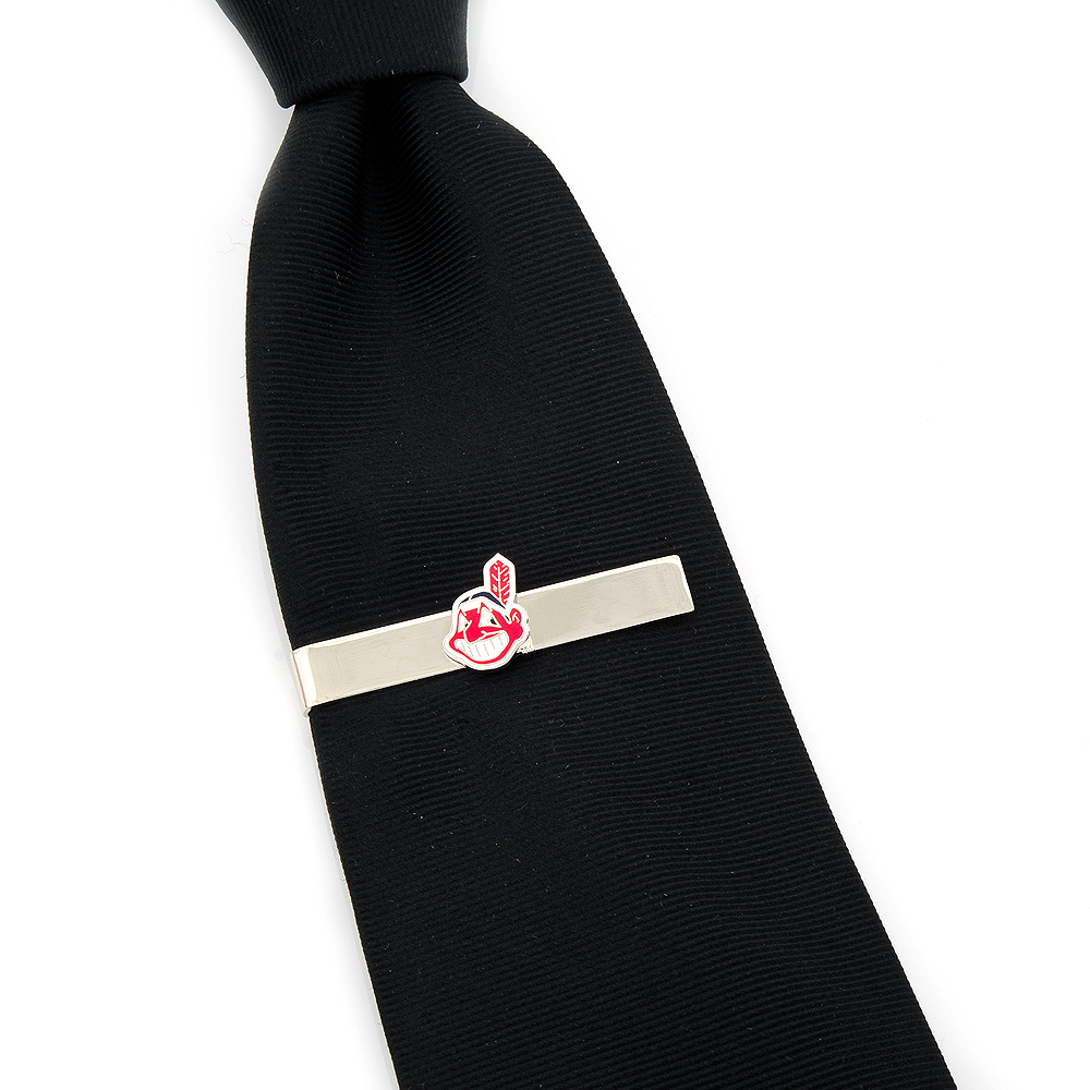 Sport Your Ties In Style By Adding The Cleveland Indians Tie Bar. A Shiny, Plated Base Metal and Enamel Sliding Tie Bar Makes It Easy To Declare youÕre A's Allegiance Front And Center. Officially Licensed MLB Tie Bar.