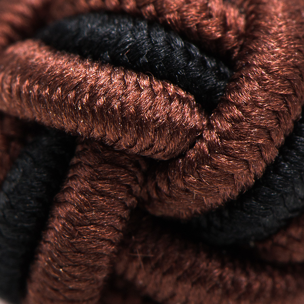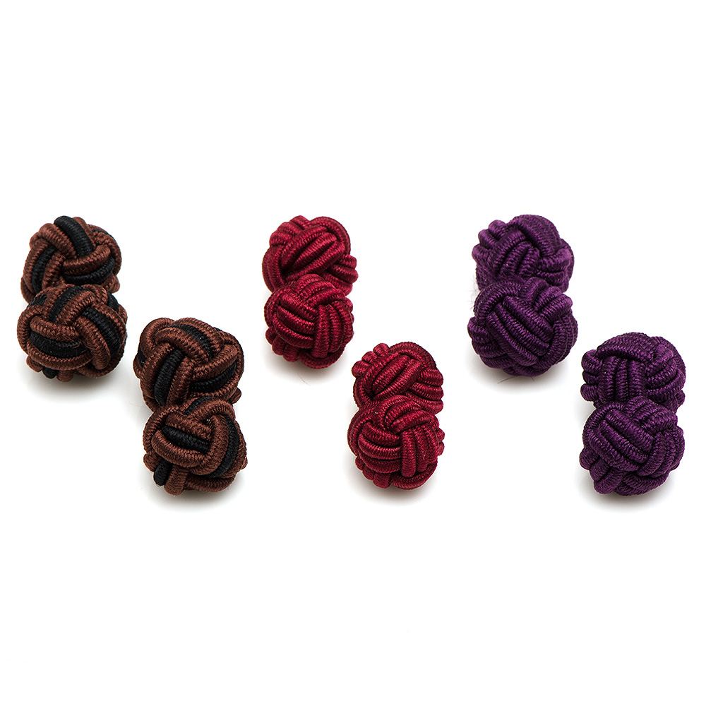 Approximately 3/4" by 3/8". Three pairs of assorted silk knots. Packaged in a corked glass vial.