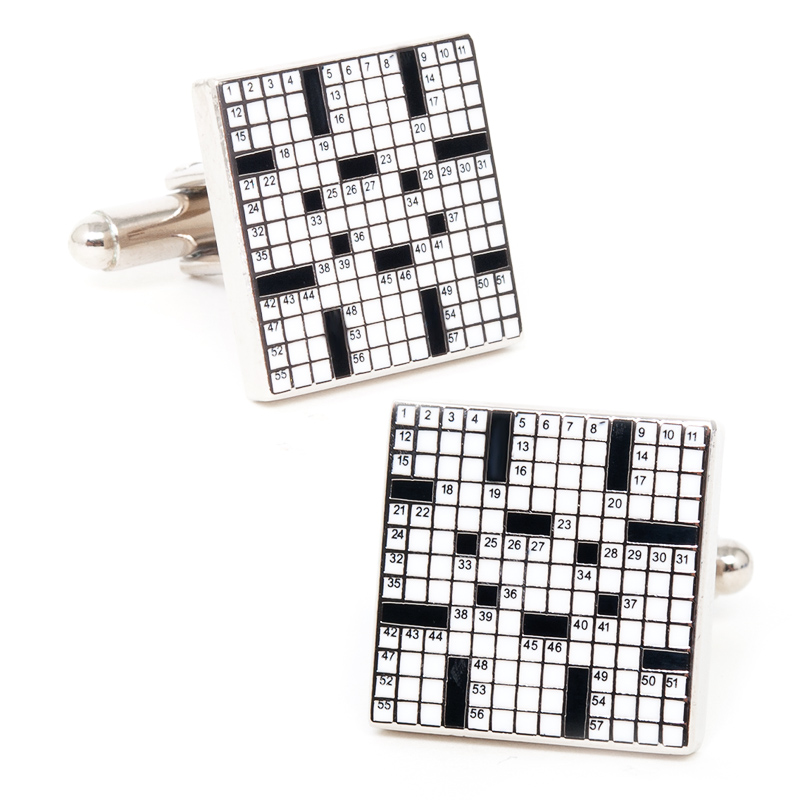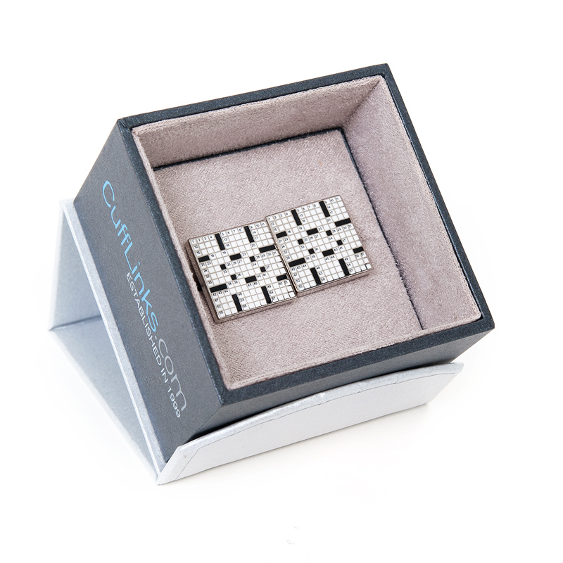 It is Crossword Puzzle Cufflinks for that man that likes to work on puzzles in the evening with a cup of coffee. Approximately it will measure 3/4" x 3/4". Rhodium plated silver and enamel with bullet back closure. Gift boxed. Enamel electronic crossword puzzle cufflinks on a nickel plated setting with a bullet backing for easy application. By Cufflinks, Inc.