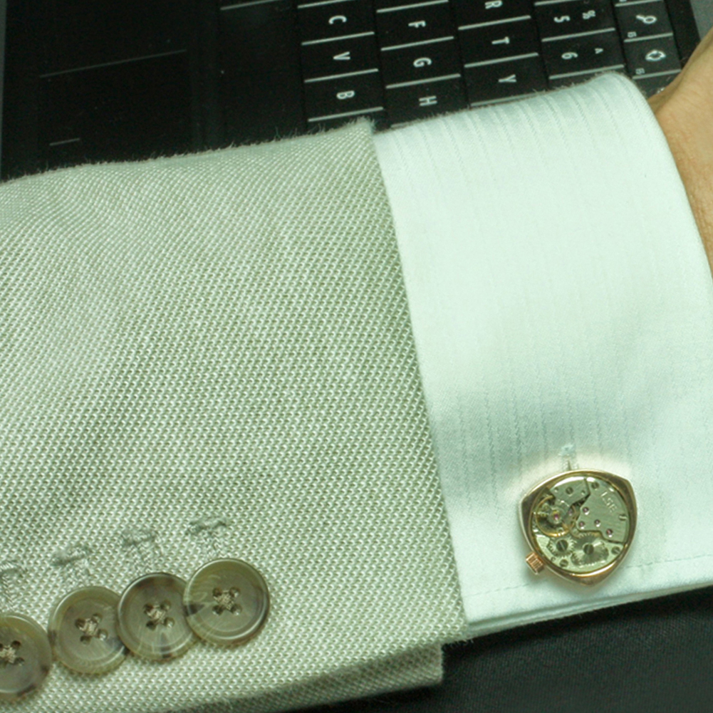Cufflinksman® presents Watch Movement Cufflinks. Actual mechanism of a watch taken from wind-up watches of the early to mid 20th Century. Featuring inner parts of vintage timepieces, gears, levers and jewels, Cufflinksman Watch cufflinks are approximately 3/4 in diameter. Plated with vintage watch parts and crystal accents. Movement Cufflinks allow you to wear engineering at its finest. Please note that this product is constructed from vintage watch parts and functionality of the watch movements is not guaranteed. Actual watch movements can vary slightly from the pair in the photograph. Watch Movement Cufflinks by Cufflinksman®