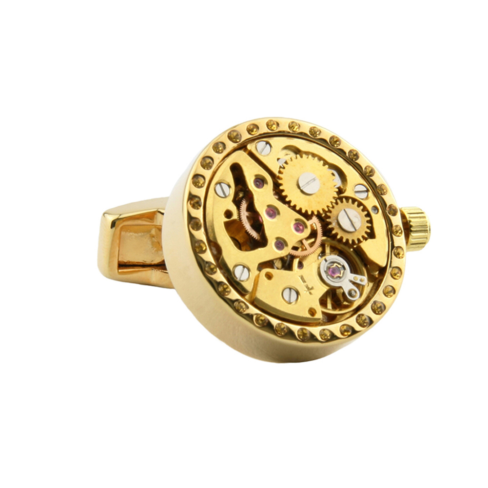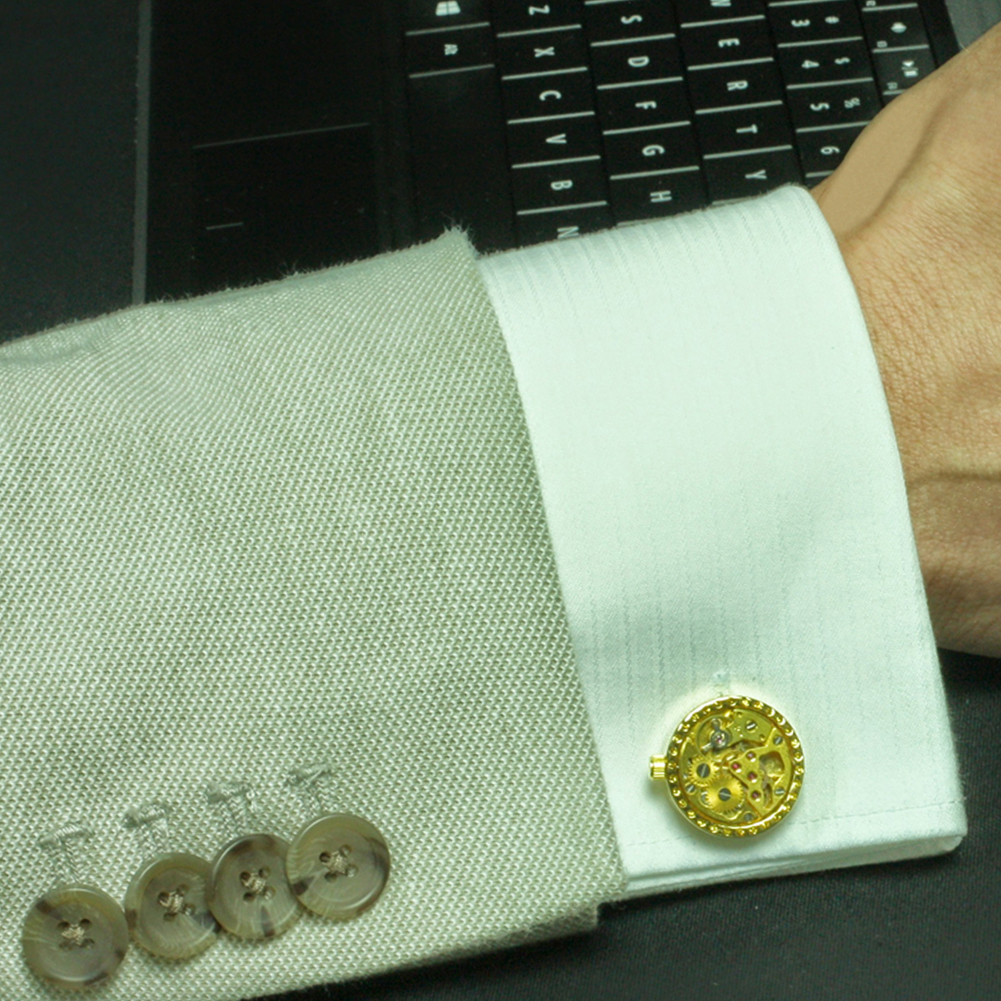 Cufflinksman® presents Watch Movement Cufflinks. Actual mechanism of a watch taken from wind-up watches of the early to mid 20th Century. Featuring inner parts of vintage timepieces, gears, levers and jewels, Cufflinksman Watch cufflinks are approximately 3/4 in diameter. Plated with vintage watch parts and crystal accents. Movement Cufflinks allow you to wear engineering at its finest. Please note that this product is constructed from vintage watch parts and functionality of the watch movements is not guaranteed. Actual watch movements can vary slightly from the pair in the photograph. Watch Movement Cufflinks by Cufflinksman®