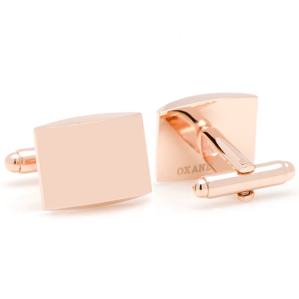 Approximately 3/4" x 1/2". Rose-gold stainless steel. Bullet back closure.