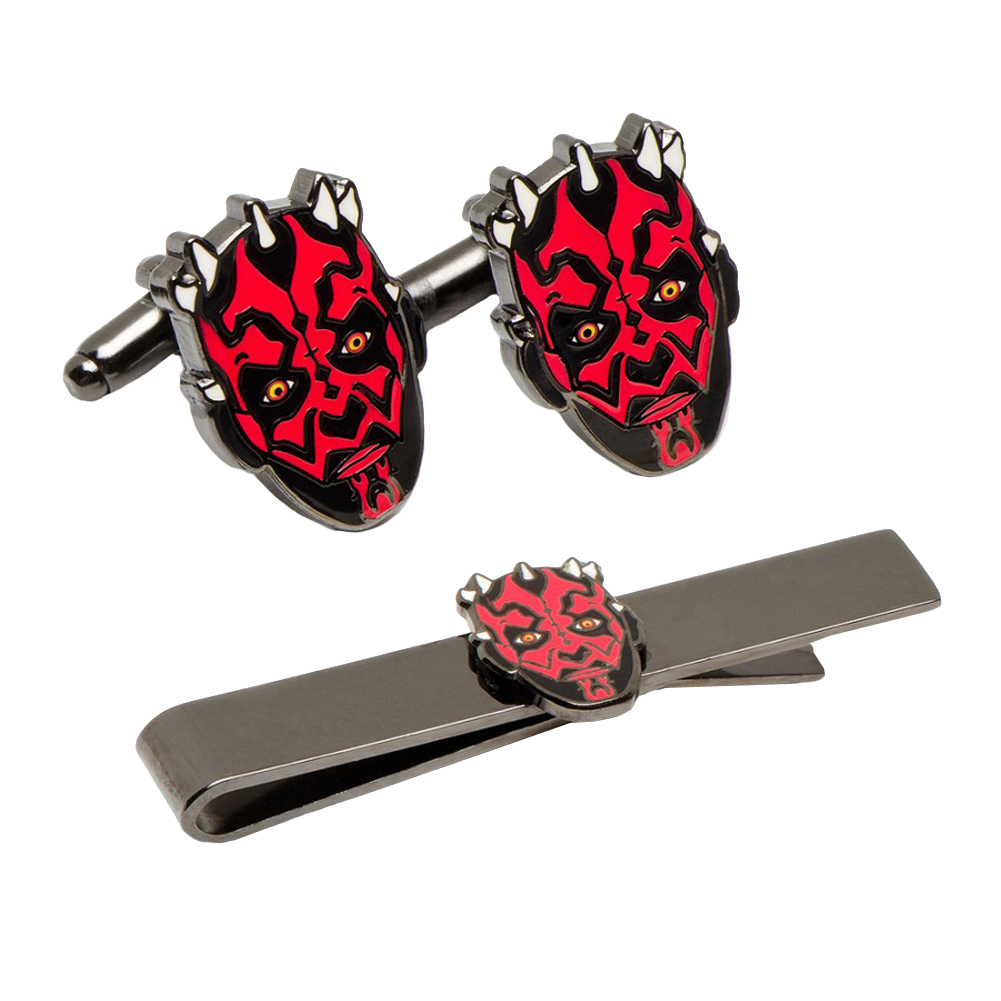 Gift set includes a pair of cufflinks and one tie bar, silver tone and enamel, Cufflinks feature bullet back closure, Officially licensed by Lucasflim LTD.