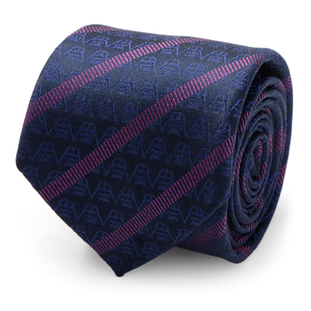 If you've sworn allegiance to the Imperial Army, this tie honoring Darth Vader will soon become your favorite accessory. A discrete series of figureheads march across in rows, divided into stripes by diagonal purple stitching. The Star Wars logo on the back completes the look on this 100% silk slim tie.