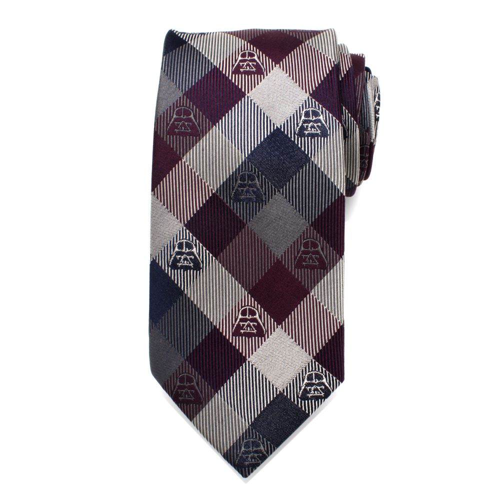 The 100% silk Star Wars tie combines fall's go-to colors of plum purples and navy blues in a modern plaid pattern with Darth Vader woven into the design.