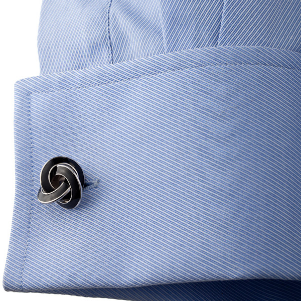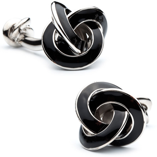 A unique, double ended backing adds a style detail like no other found on the market. The classic knot design is given a modern twist with a black enamel highlight.