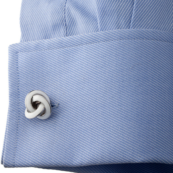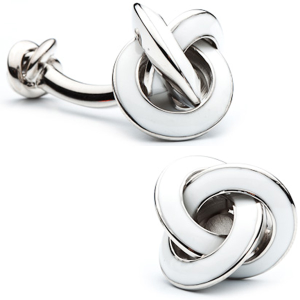 The double knot cufflinks feature both an enamel front as well as a fixed knot backing. By Ox and Bull Trading Co. Double ended white enamel knot cufflinks. Dress up in style with these stylish cufflinks.A unique, double ended backing adds a style detail like no other found on the market. The classic knot design is given a modern twist with a blue enamel highlight.