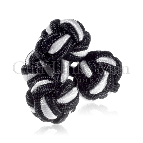 It is Ebony & Ivory silk-knotted cuff links. Hand woven, delicately knotted. Exquisite detail down to the intertwined fibers. Made from real silk. Standard size fit all. Silk Knots are packaged - up to three pairs in one presentation box. It is a personalized designer cufflink which is available for men.
