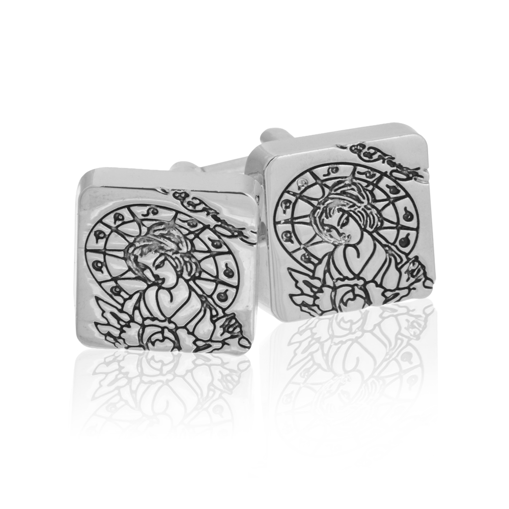 It is Ed Hardy Silver Geisha Lady Tattoo Cufflinks. Ed Hardy offer fresh intricate artwork with creative tattoo designs. This same creative energy is brought to their cufflinks. Featuring an engraving of Geisha Lady Tattoo & Ed Hardy Logo, these links are set on silver-tone cufflink backs. This expertly designed cufflink is the perfect complement to your attire for a night on the town. Each set of cufflinks comes in a black designer gift bag by Ed Hardy.