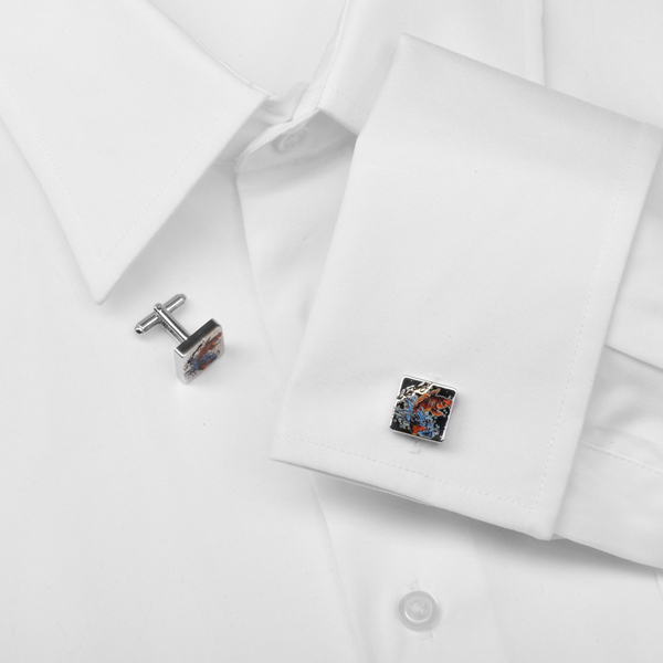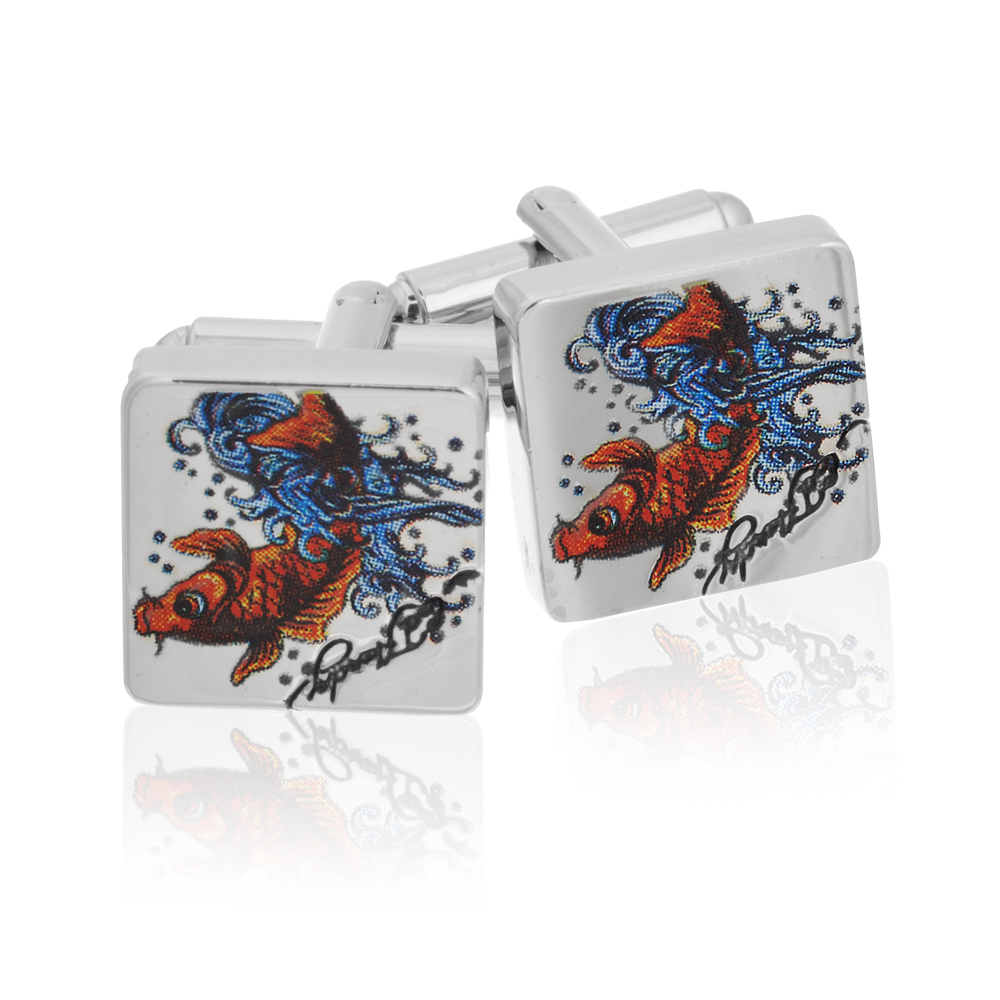 These Ed Hardy Koi Silver Fish Cufflinks will perfectly represent the creative hand of Hardy, the influence of Asian art, and the impact of tattoo design. Vibrantly bold and alluring, these trademark Japanese fish will add color and dimension to any suit jacket. Ed Hardy products symbolize how tattoo art has tremendously transformed the fashion world, and also represent an aggressive passion for creative production. Venturing off to Japan to study under his mentor, Sailor Jerry, Ed Hardy mastered the technique of synthesizing Japanese aesthetics with American artwork. Ed Hardy's prolific tattoo designs are captured in complete accuracy in these Koi Silver Fish Cufflinks. His legacy for capturing the themes of passion, love, and death through tattooing will continue to shape the fashion industry and art world for years to come.